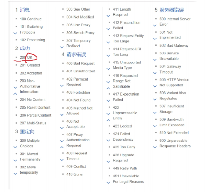 - 5xx 是服务器出错(程序员一般关注的是这个,服务器出问题大概率是你的代码有bug!)