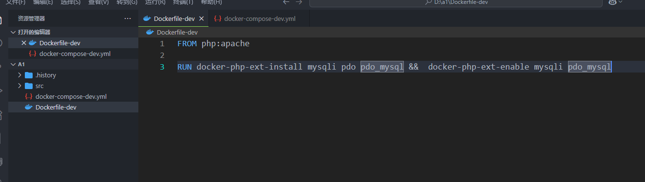 FROM php:apacheRUN docker-php-ext-install mysqli pdo pdo_mysql && docker-php-ext-enable mysqli pdo_mysql
