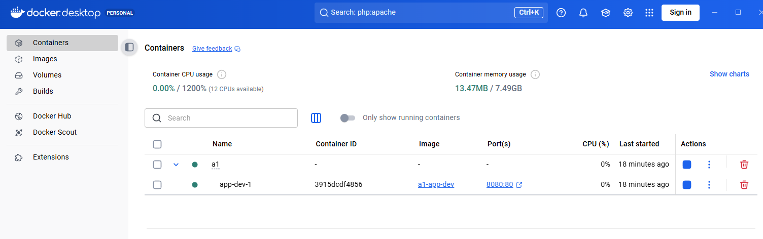 services:app-dev:build:context: .dockerfile: Dockerfile-devvolumes:- ./src/:/var/www/html/ports:- 8080:80