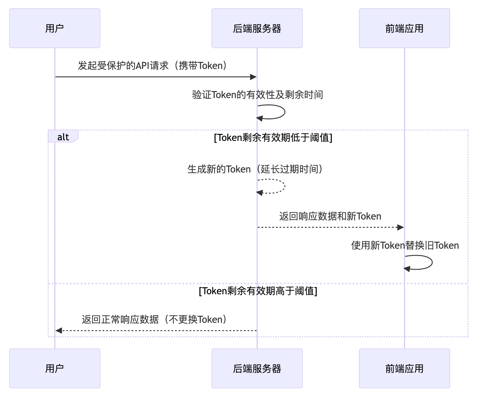 - 返回响应数据和新的Token给前端,前端使用新的Token替换旧的Token