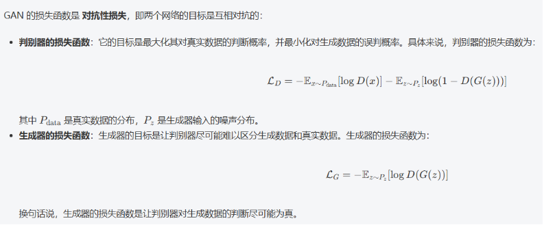 判别器: 它的目标是成为一个“鉴定专家”,能够正确区分输入的数据是来自真实数据集还是生成器生成的假数据。它接收一个数据样本,输出一个标量,表示该样本为真的概率。
