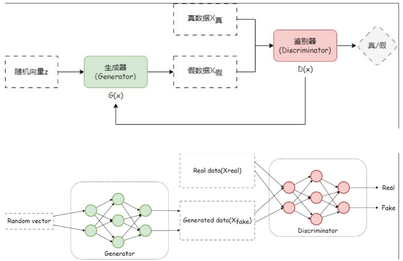 生成对抗网络是一种无监督深度学习模型,其核心思想是通过让两个神经网络相互“竞争”或“对抗”来学习。这两个网络分别是:
