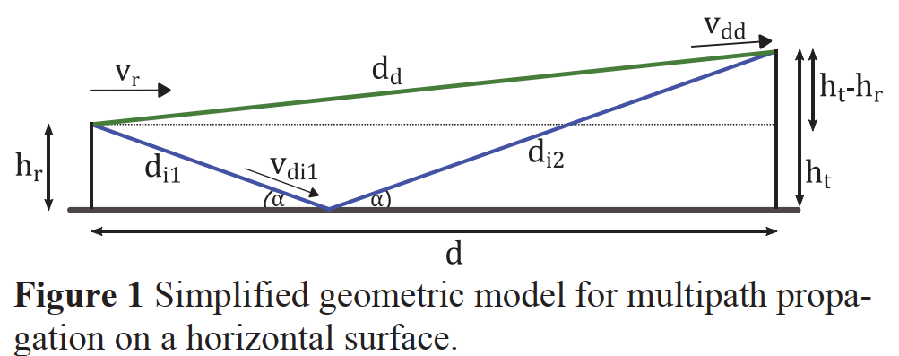 图 1:水平表面上多径传播的简化几何模型