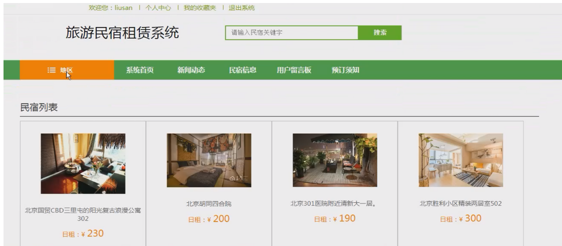 旅游民宿租赁系统的开发设计基于市场的发展趋势以及用户的应用需求,通过系统平台可以实现民宿信息的在线发布,为用户提供海量的民宿信息,方便用户查找及选择。通过线上平台的信息发布,也对民宿的宣传推广起到了一定推动作用,更有利于吸引更多的用户,同时在线租赁服务的应用,可以帮助游客实现出行的提前规划,也可以帮助民宿管理人员实现平台化的管理,可以缓解旅游旺季所带来的管理压力,同时也实现了民宿的规范化管理。相比传统的民宿管理模式,线上管理系统的应用是顺应时代的产物,可以满足更多用户的需求,同时通过平台化的管理可以提高游客的体验,更有利于民宿的经营发展。