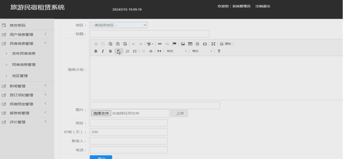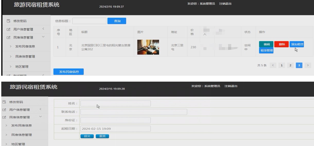 本文主要利用VUE+Springboot框架结构、JAVA编程语言及Mysql数据实现系统平台的搭建,同时为了确保系统用户数据信息的安全性,利用MD5加密技术实现用户信息安全设定,由于时间关系在功能的呈现上主要以民宿信息、民宿在线预订服务以及在线留言等功能模块为主,通过系统平台可以实现民宿信息的发布及预订,基本满足了民宿管理的需求,但是在使用上还不够灵活便捷。随着手机应用平台的飞速发展,对于民宿的预订及信息查询可以通过手机微信小程序应用平台来实现,在使用上会更加的便捷灵活,同时能够实现实时的信息查看,随着用户端需求的不断增加,对于民宿租赁系统平台的开发设计还存在很多可提升空间。