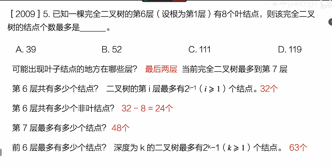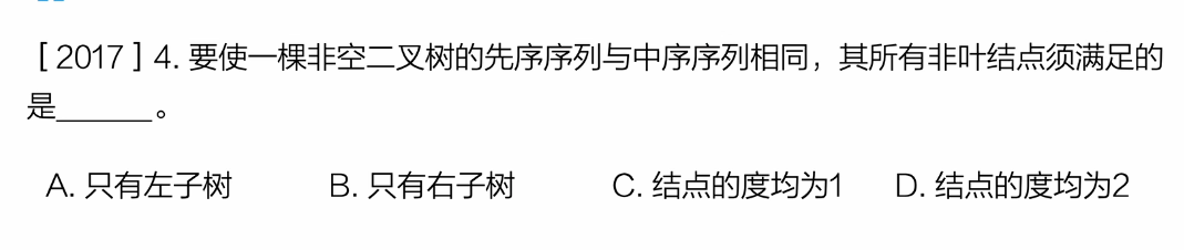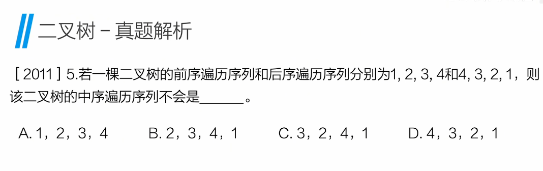 注意:已知前序遍历和后序遍历是不能确定一棵二叉树的
