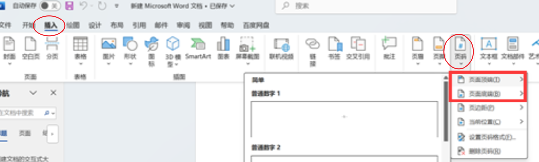(3)点击下拉菜单,选择页码位置(常用 “页面底端”“页面顶端”),再选一个喜欢的样式(比如居中、居右);