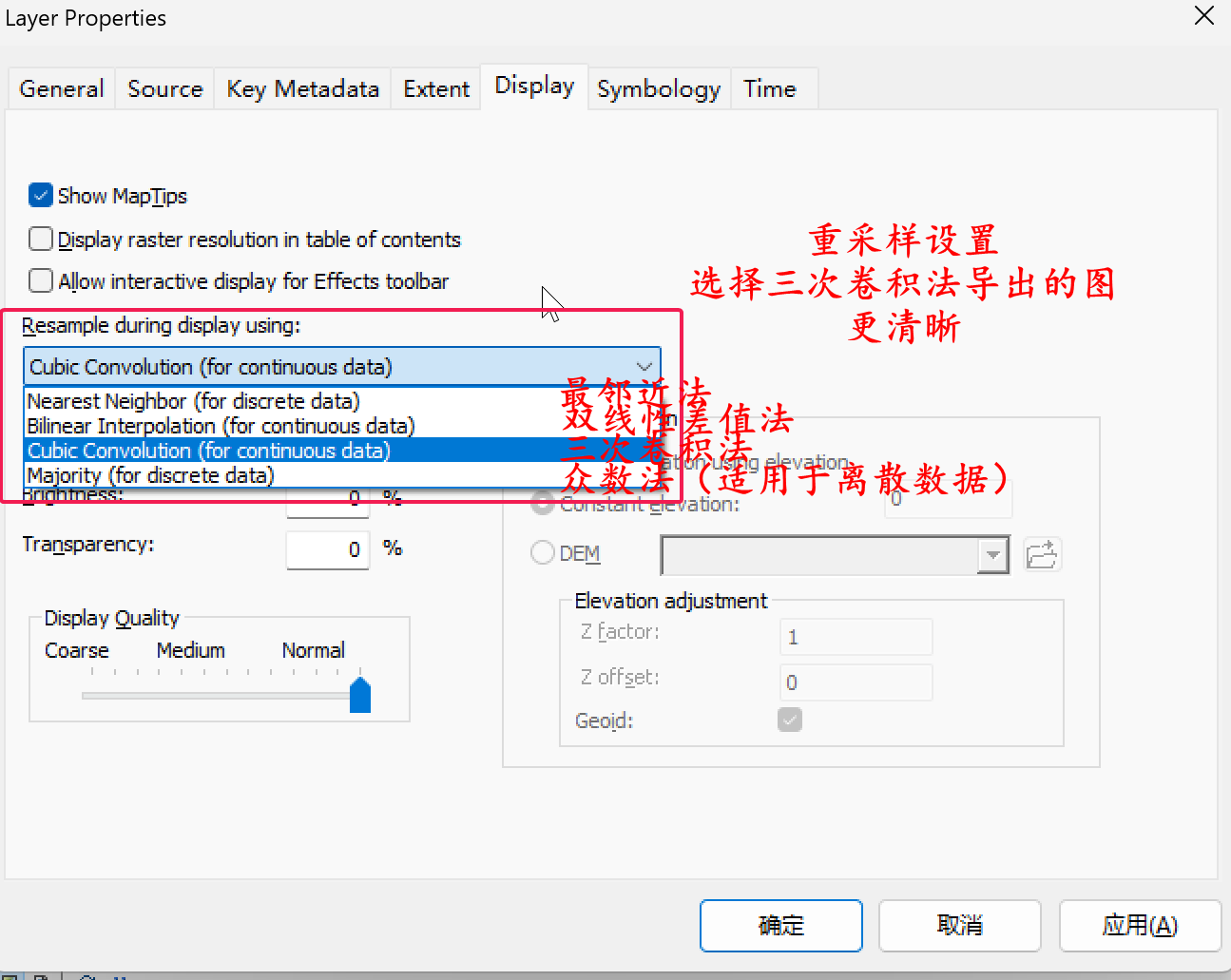 设置重采样的方法,选择三次积卷法,让最后需要导出的tif更清晰。