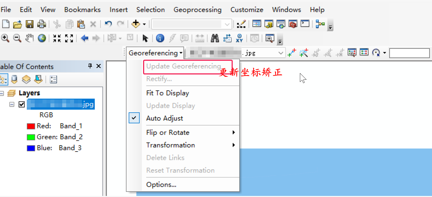 坐标矫正没问题了之后可以在地图校准工具中点击 更新地图配准(Update Georeferencing)