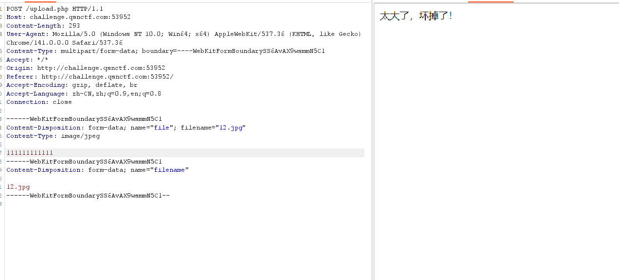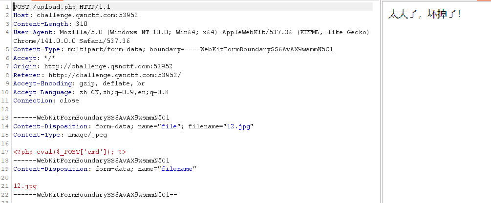 此题的难度结合了上一题的解题思路,还有在上传文件时检验文件的长度,如下所示