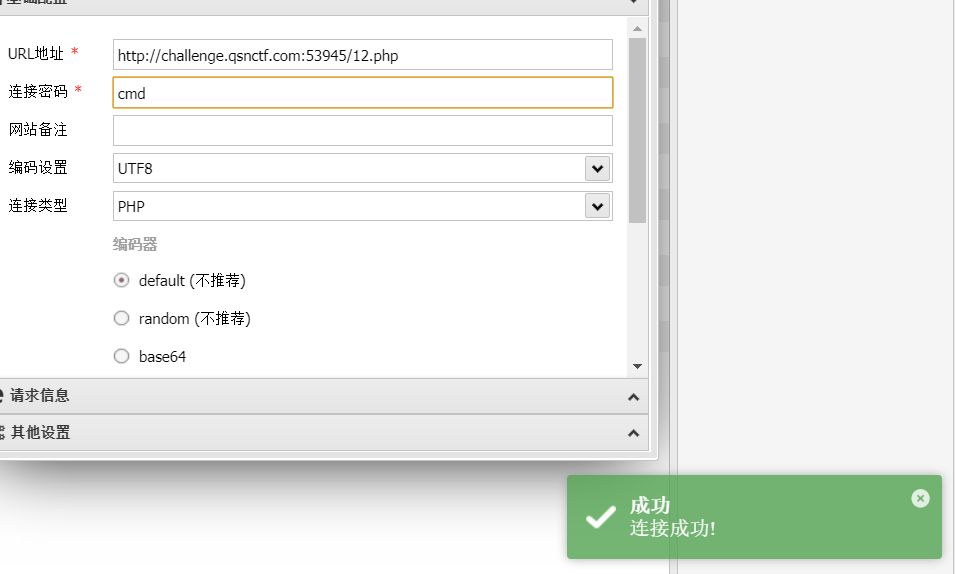 可以看到解析成功了,那么使用蚁剑进行连接即可