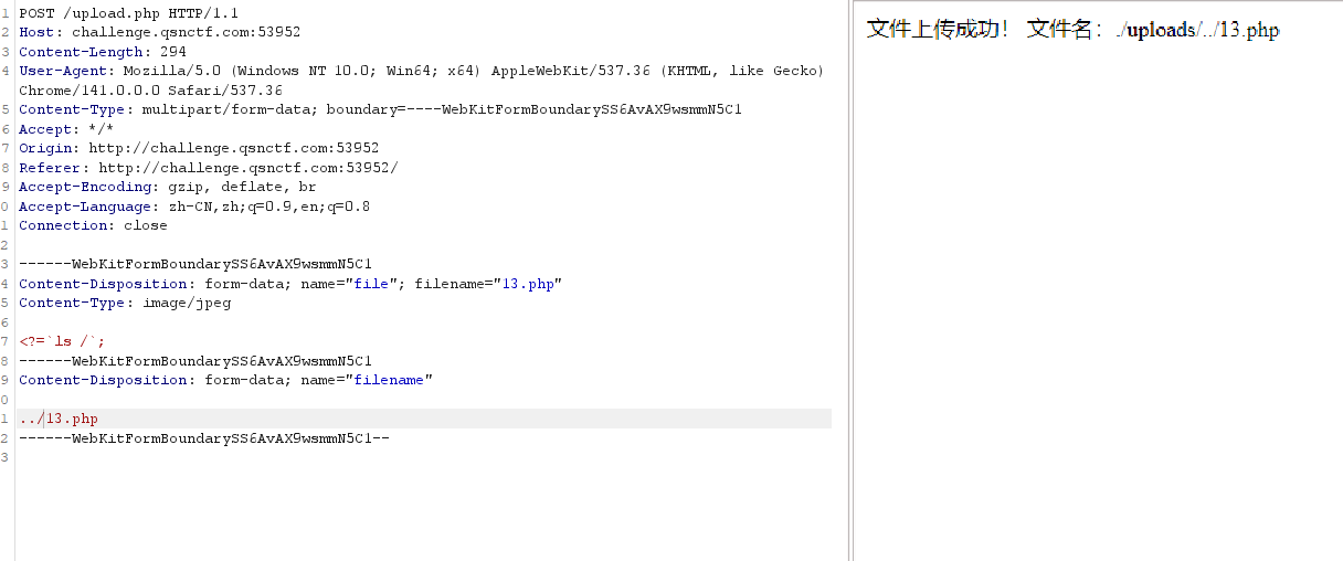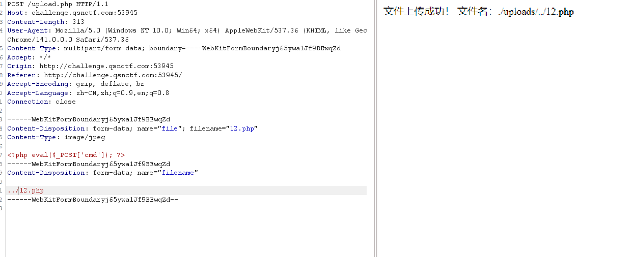 题目提示:当前目录无法解析,说明其文件上传和目录穿越的结合