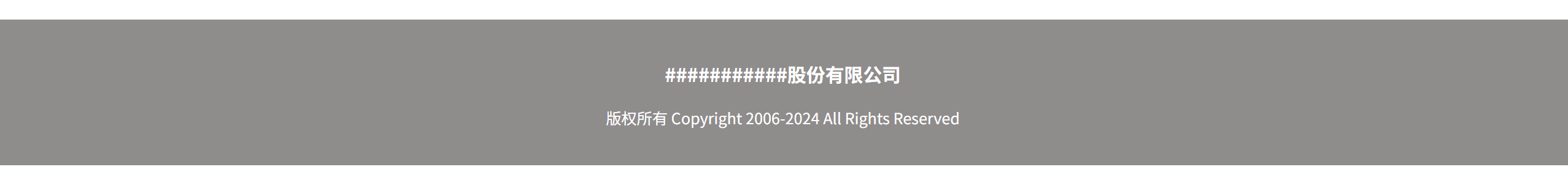 <!-- 页脚版权区域 --><footer class="footer"><p class="company-name">###########股份有限公司</p><p class="copyright">版权所有 Copyright 2006-2024 All Rights Reserved</p></footer>