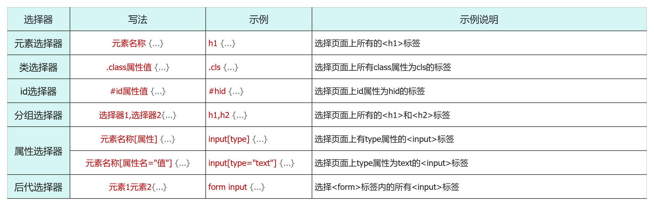 顾名思义:选择器是选取需设置样式的元素(标签),但是我们根据业务场景不同,选择的标签的需求也是多种多样的,所以选择器有很多种。选择器通用语法如下: