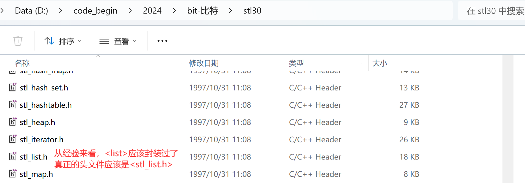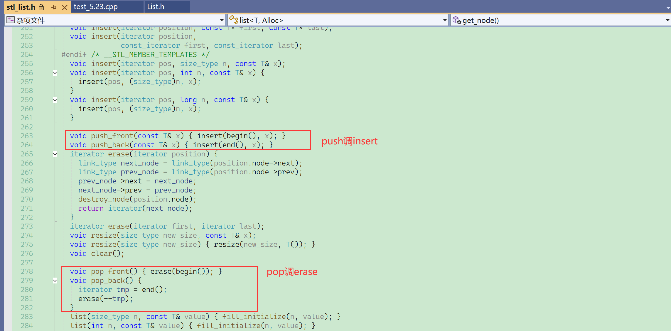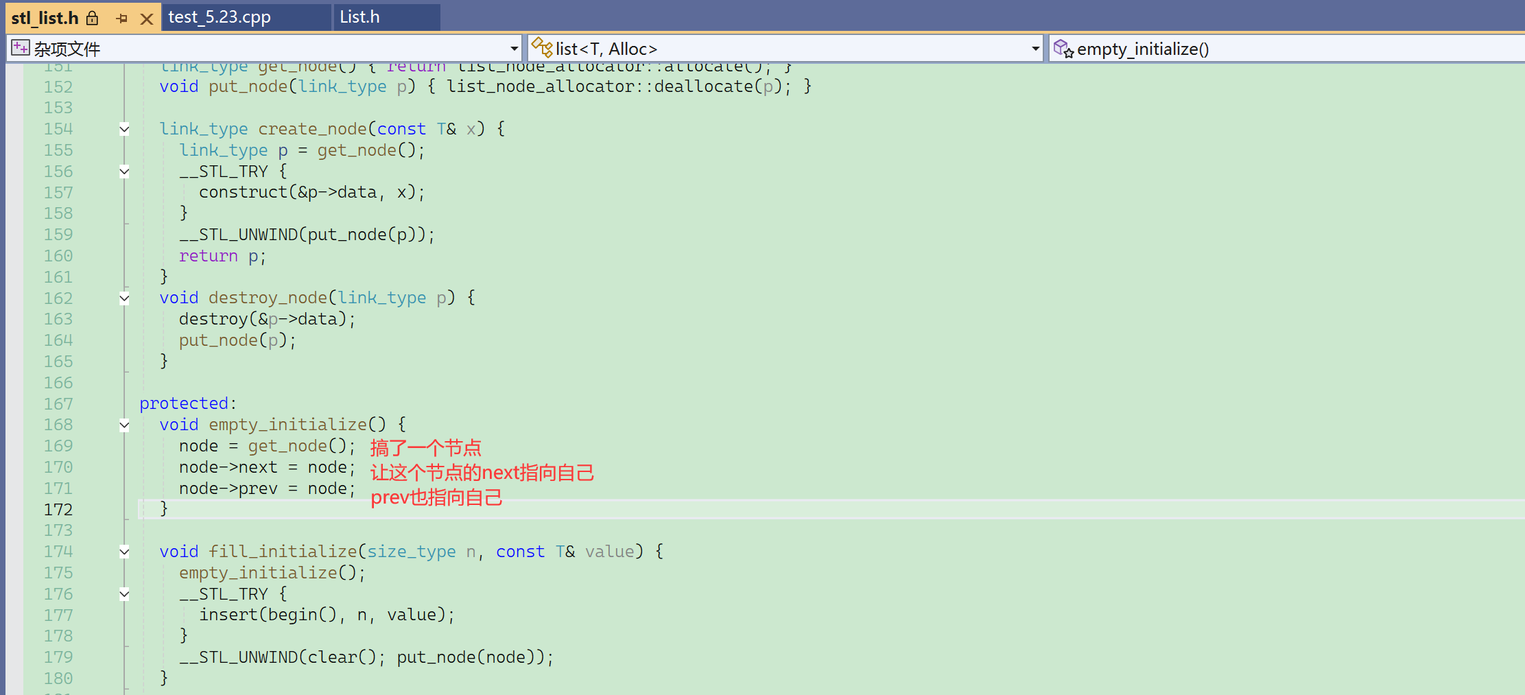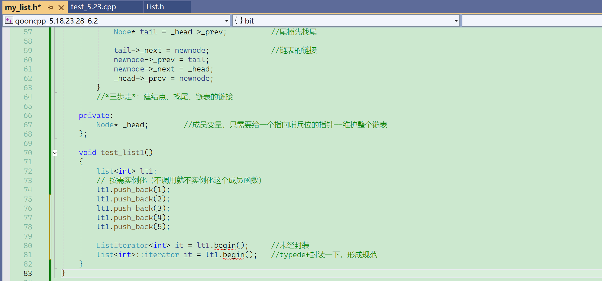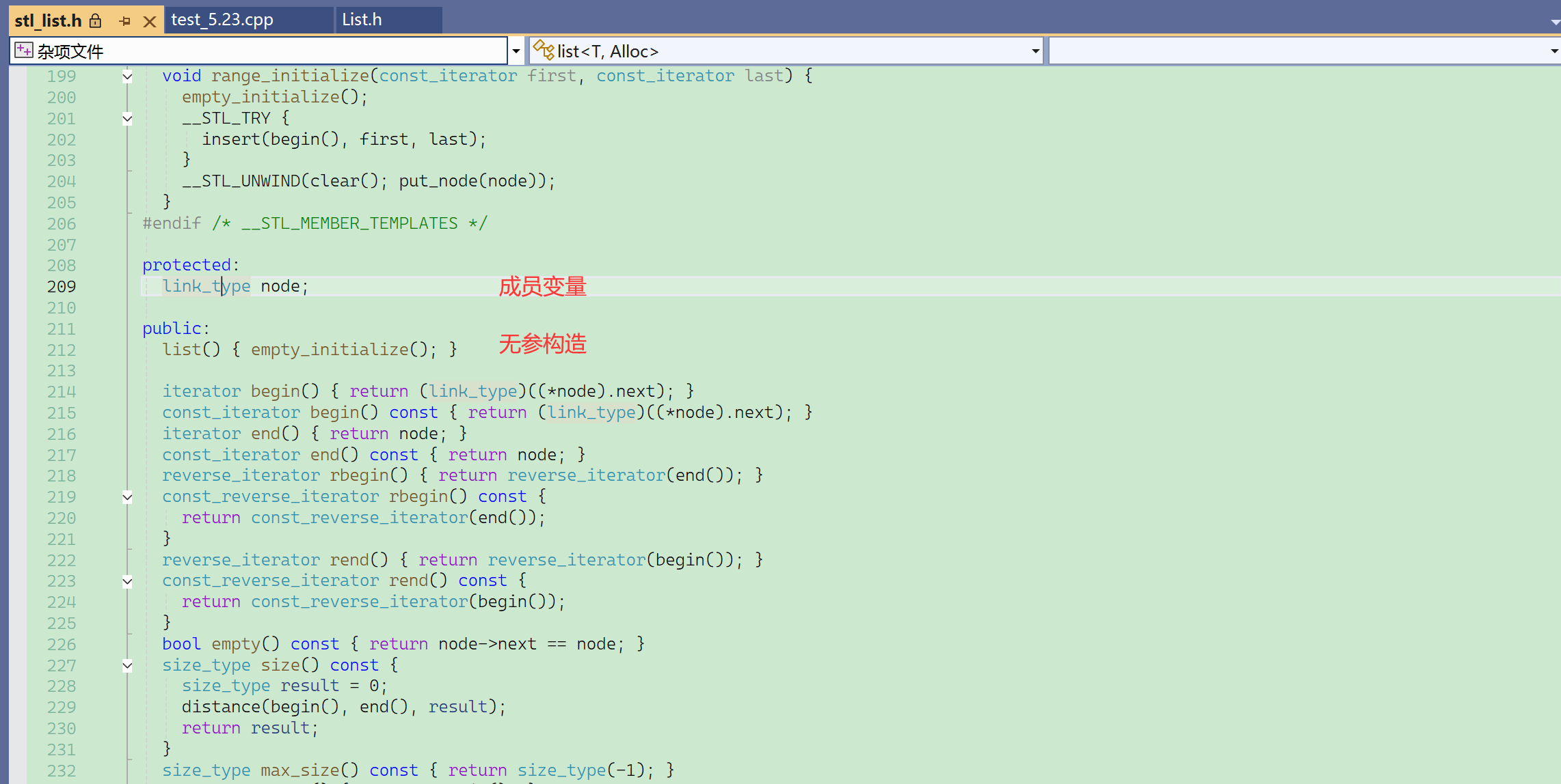 - 平时接触的是list,这是最外层的封装,而ListNode、ListIterator等类型我们是不用去接触的。(潜藏层)