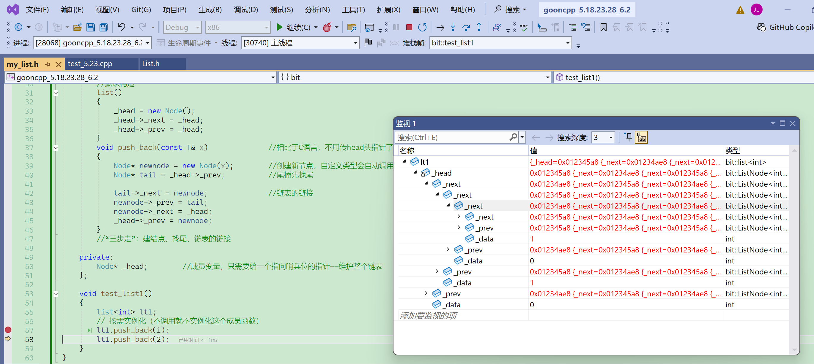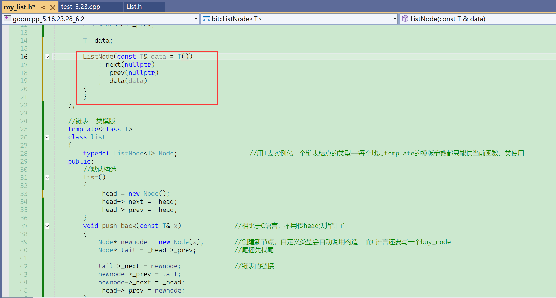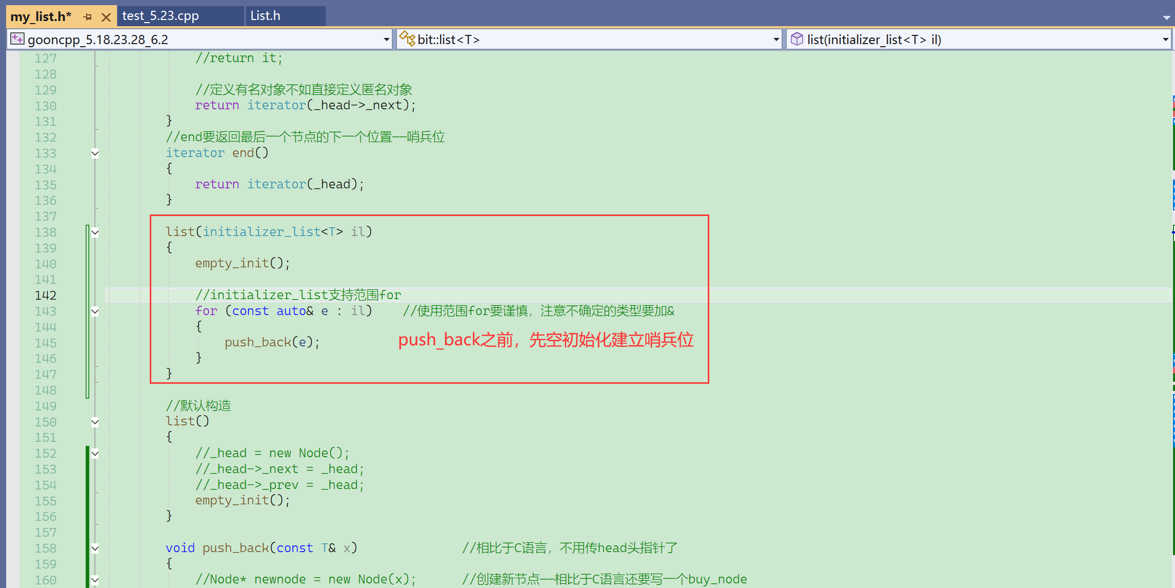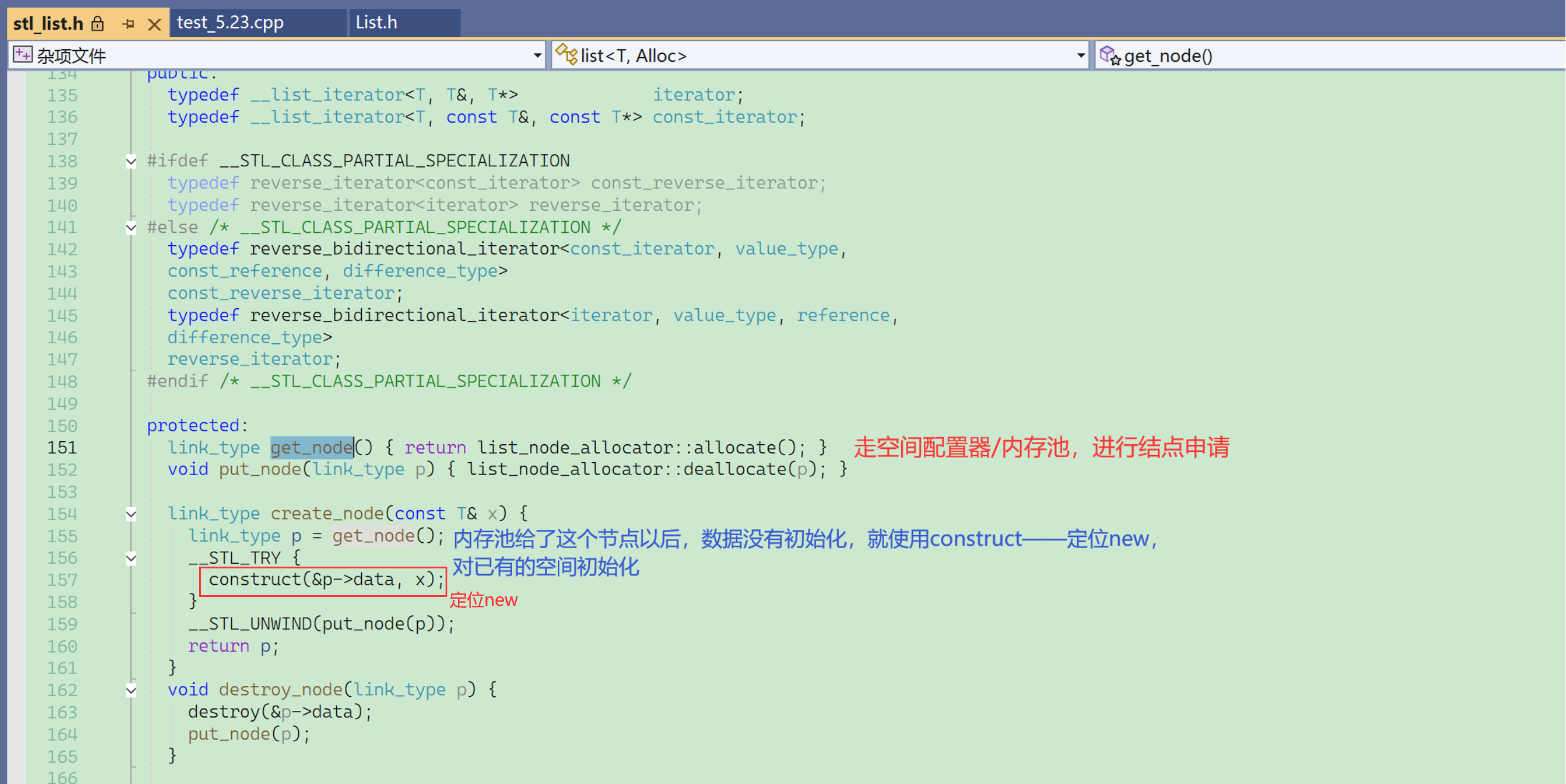 - 平时接触的是list,这是最外层的封装,而ListNode、ListIterator等类型我们是不用去接触的。(潜藏层)