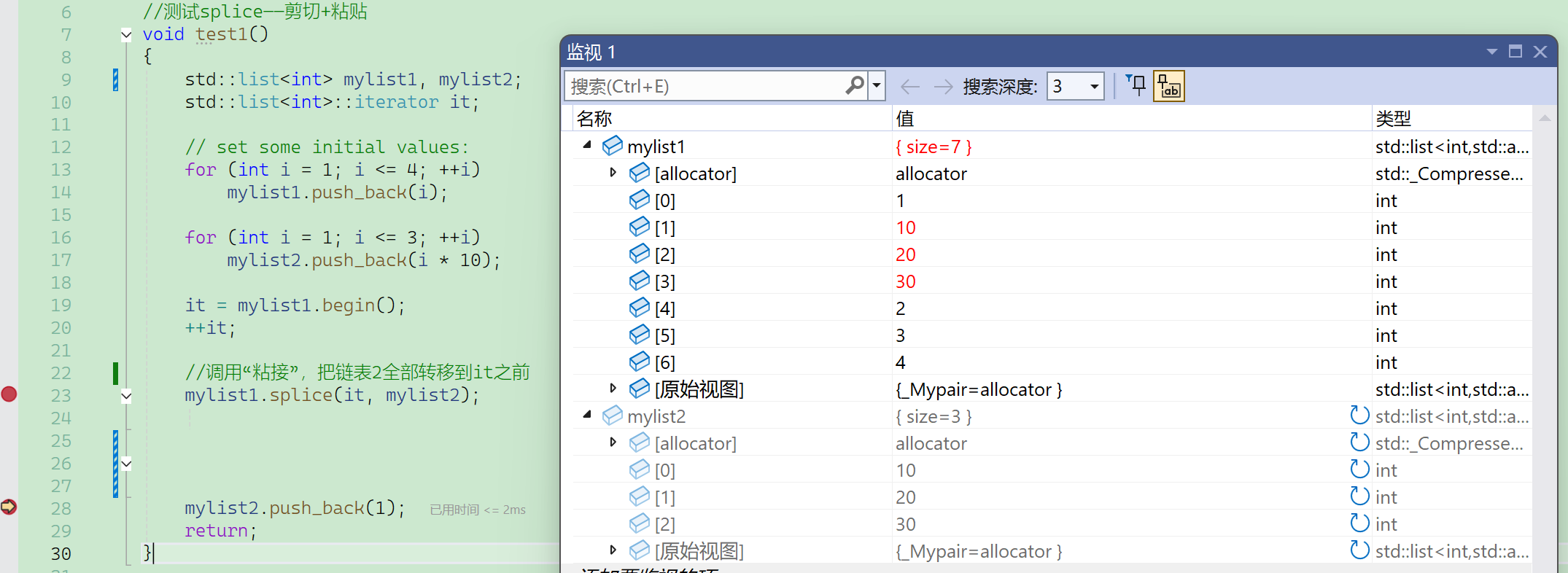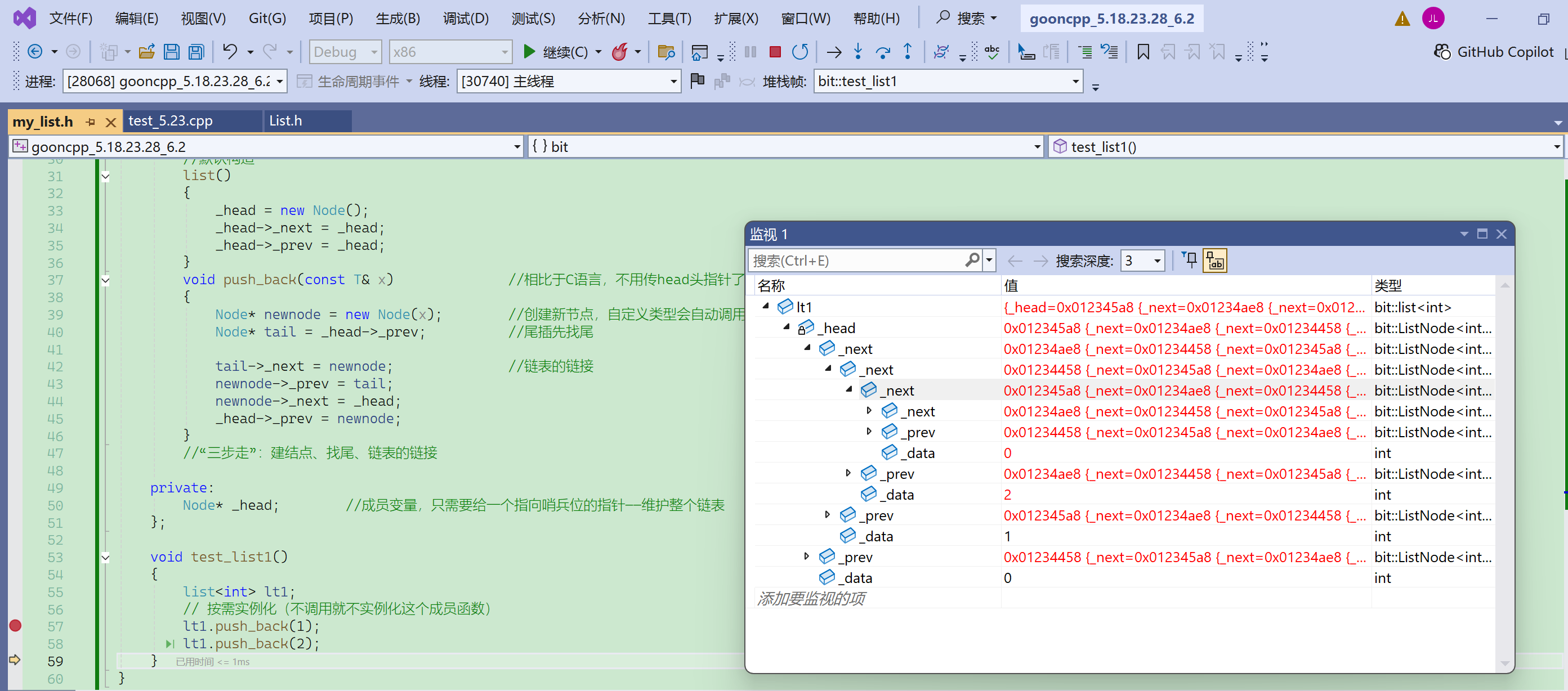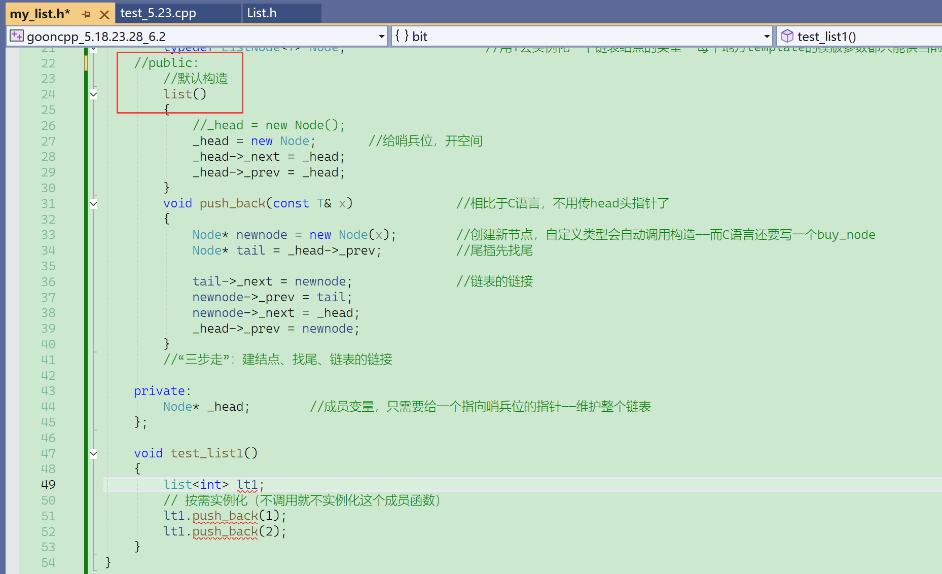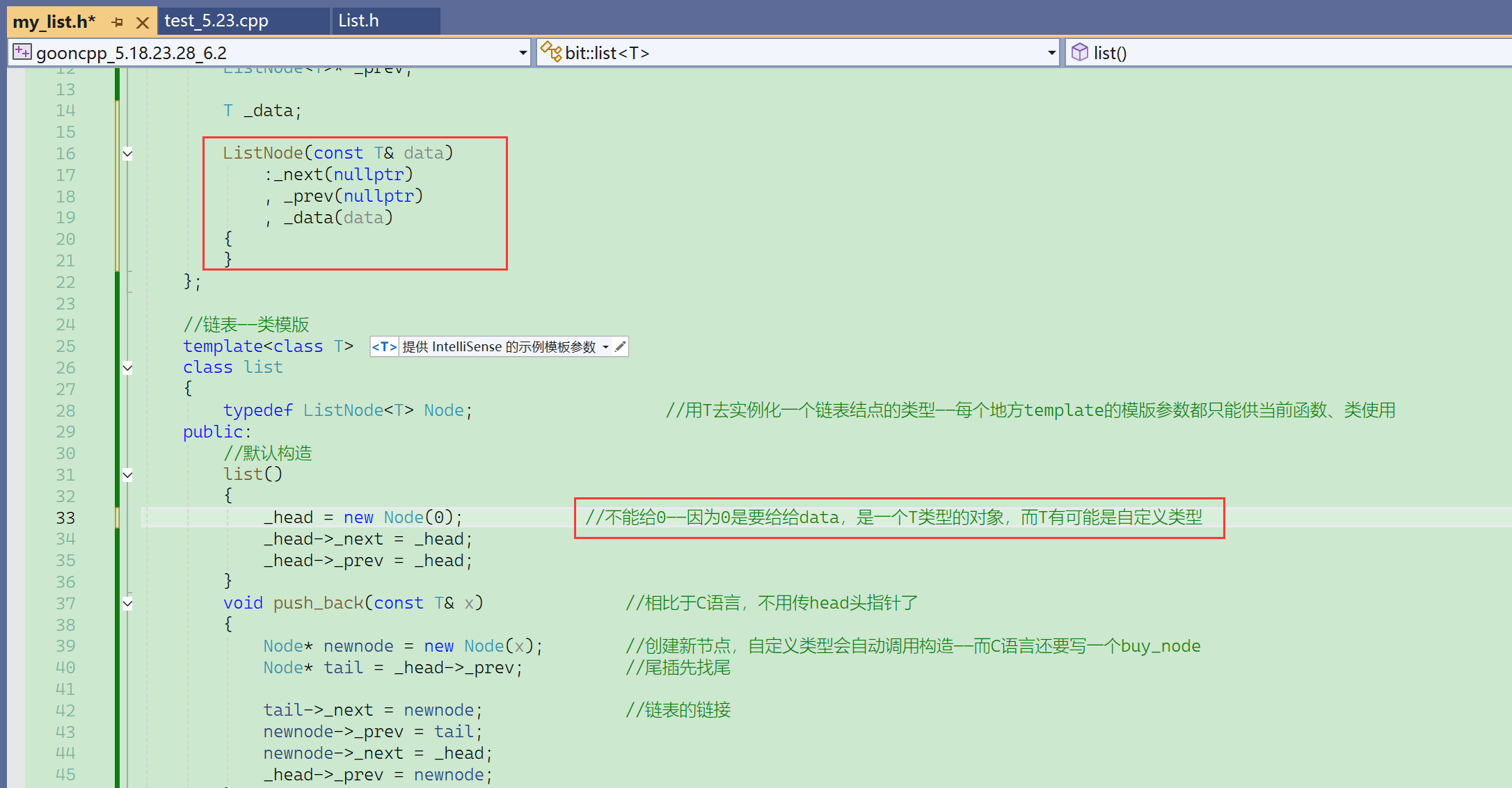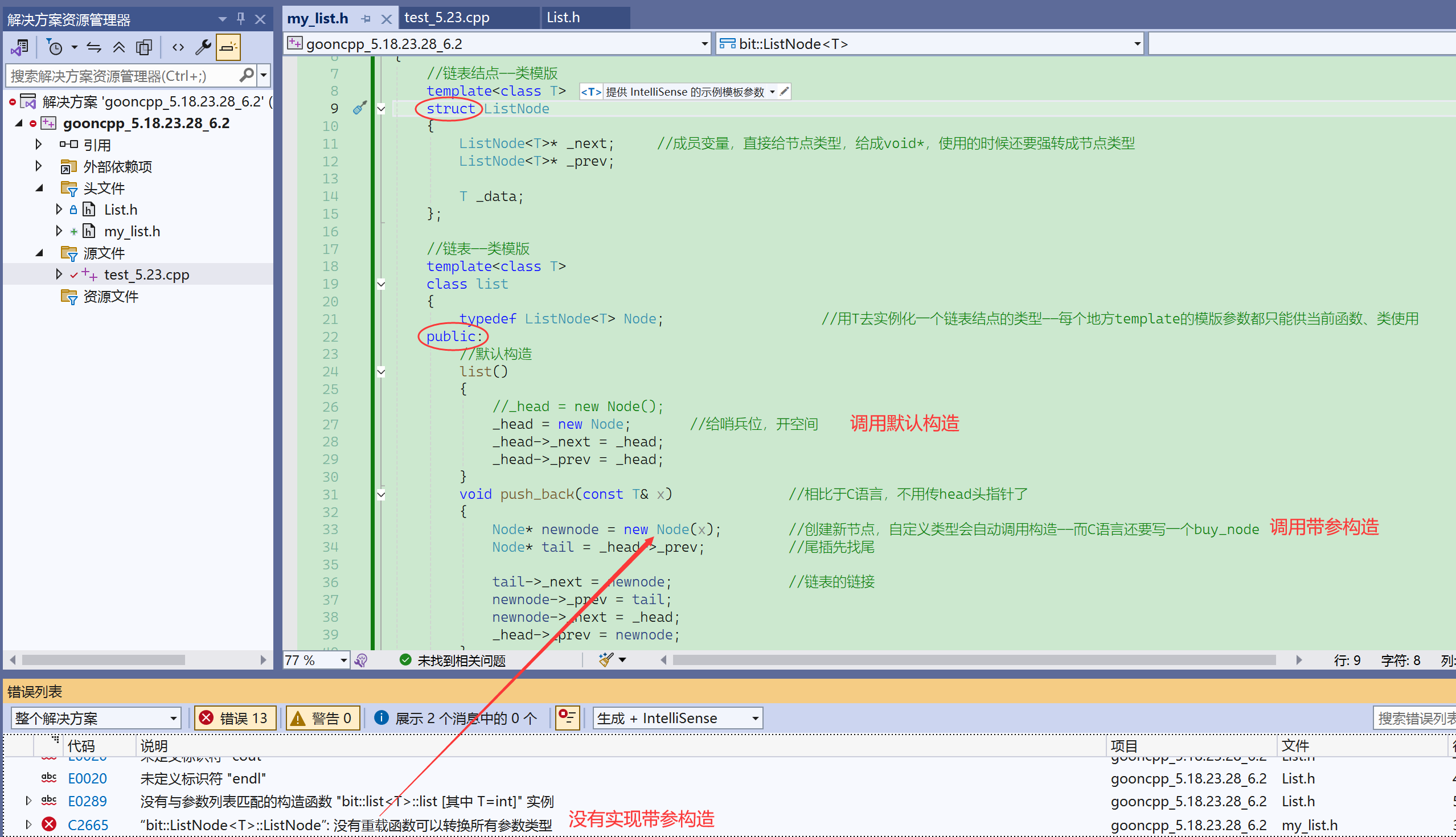 - 平时接触的是list,这是最外层的封装,而ListNode、ListIterator等类型我们是不用去接触的。(潜藏层)