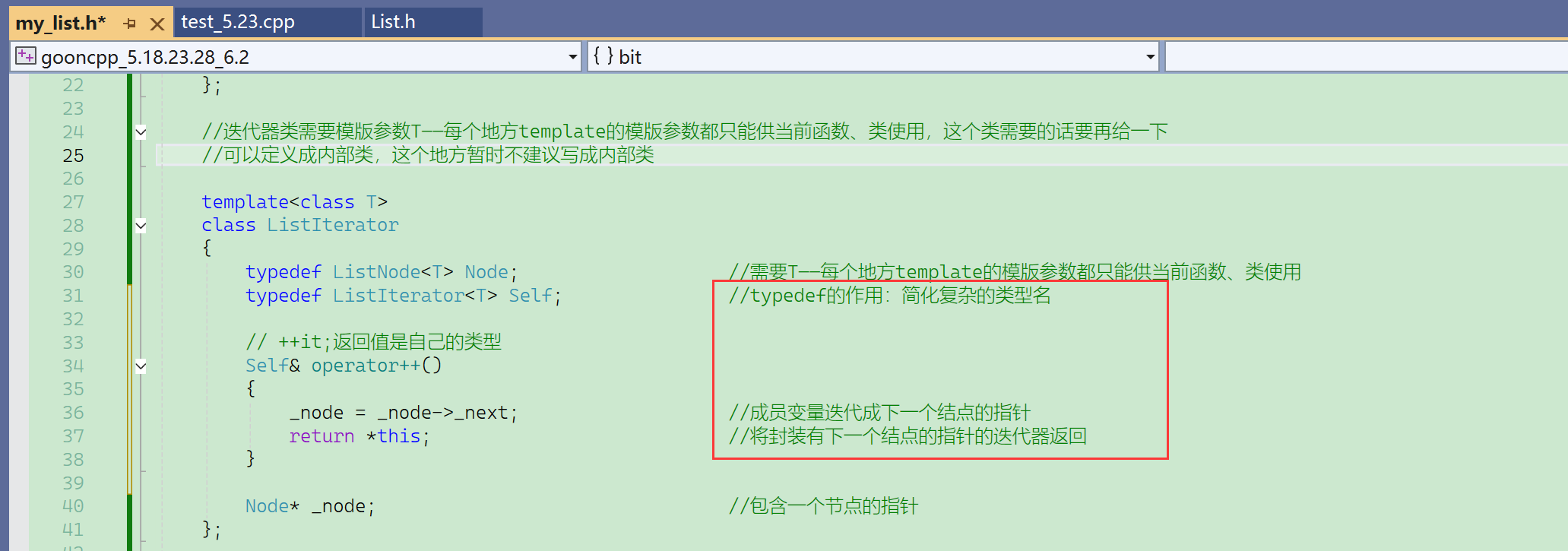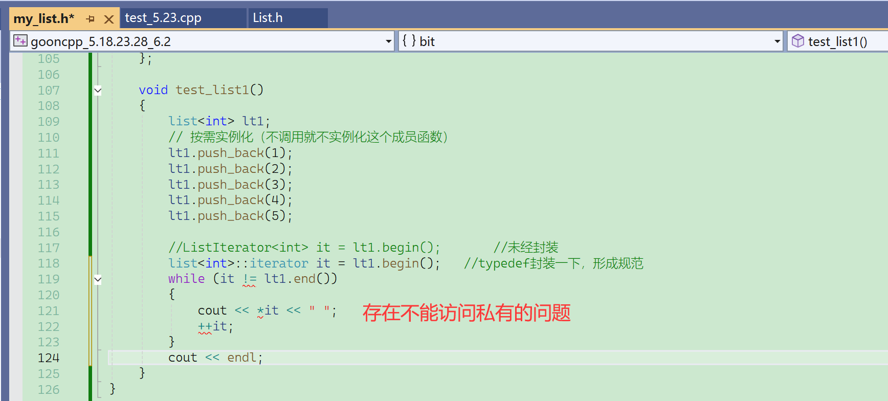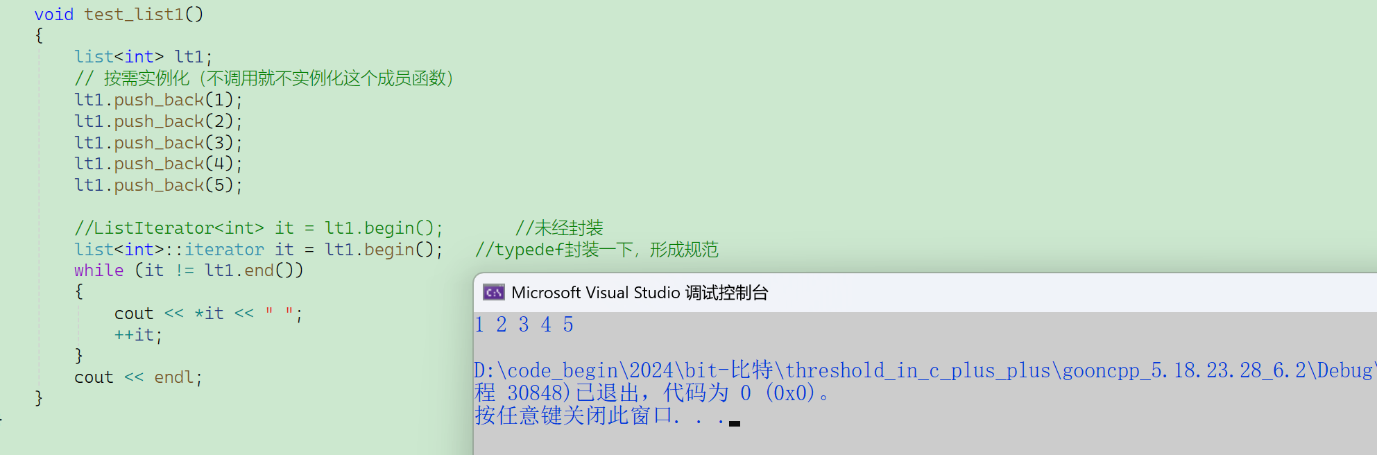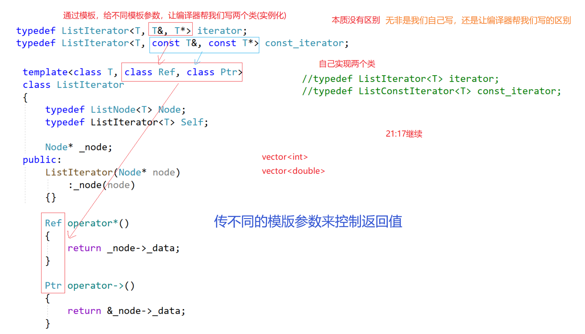 - 而it._next->data这样的代码却不是通用的,虽然能通过,但是用到库里的链表的it._nect->data就不行了,因为it的成员变量叫什么我们并不知道。