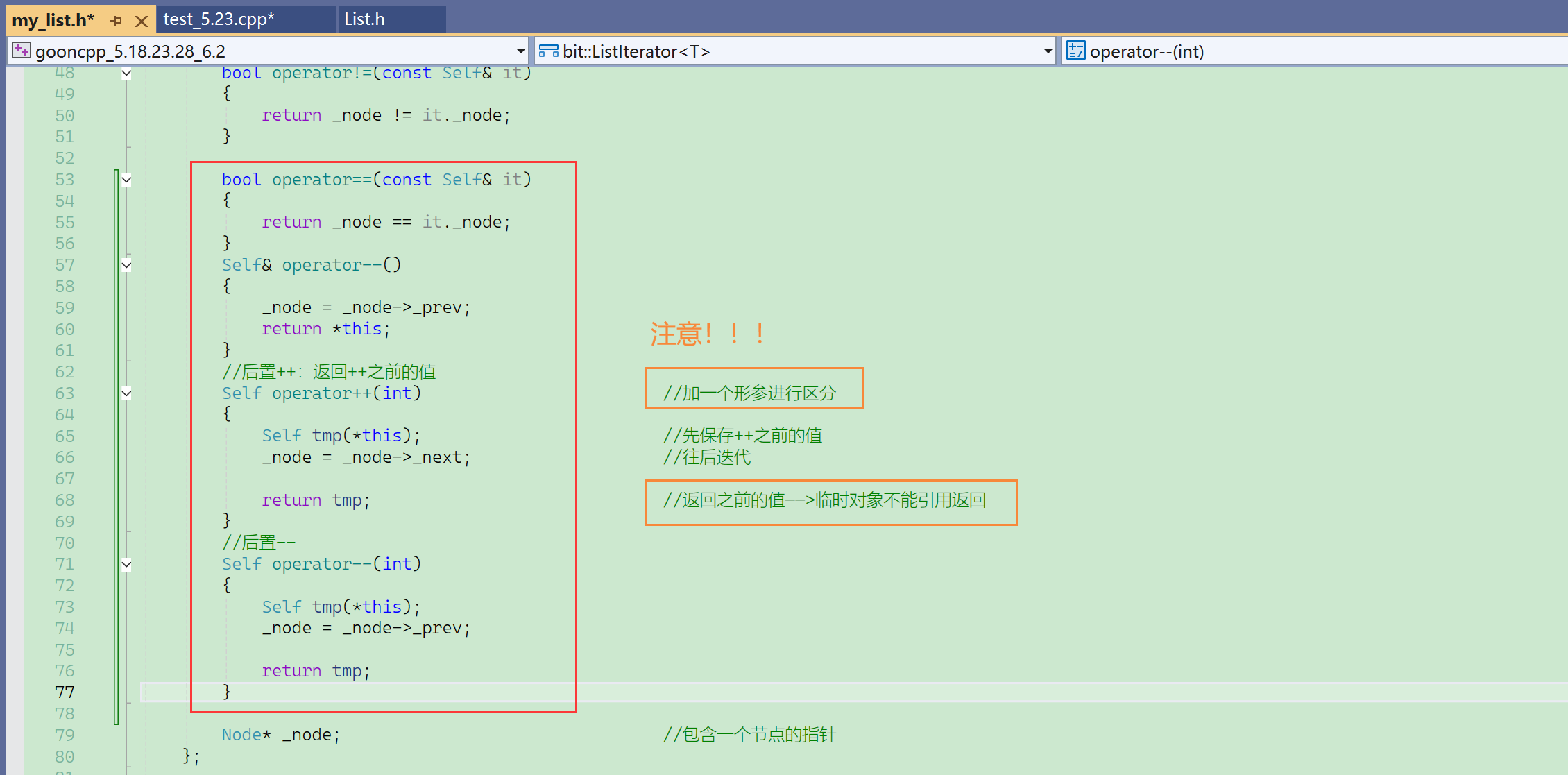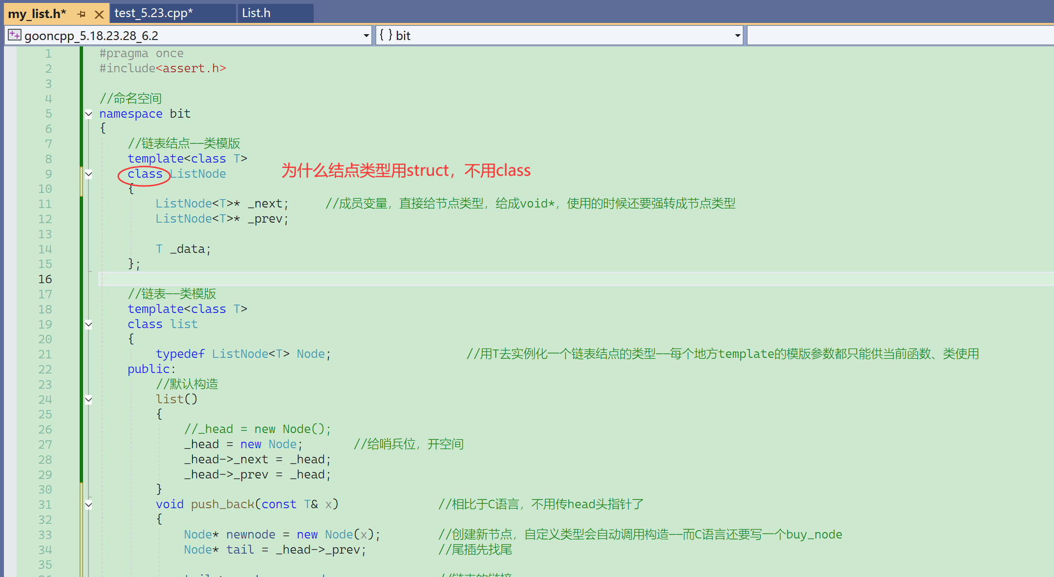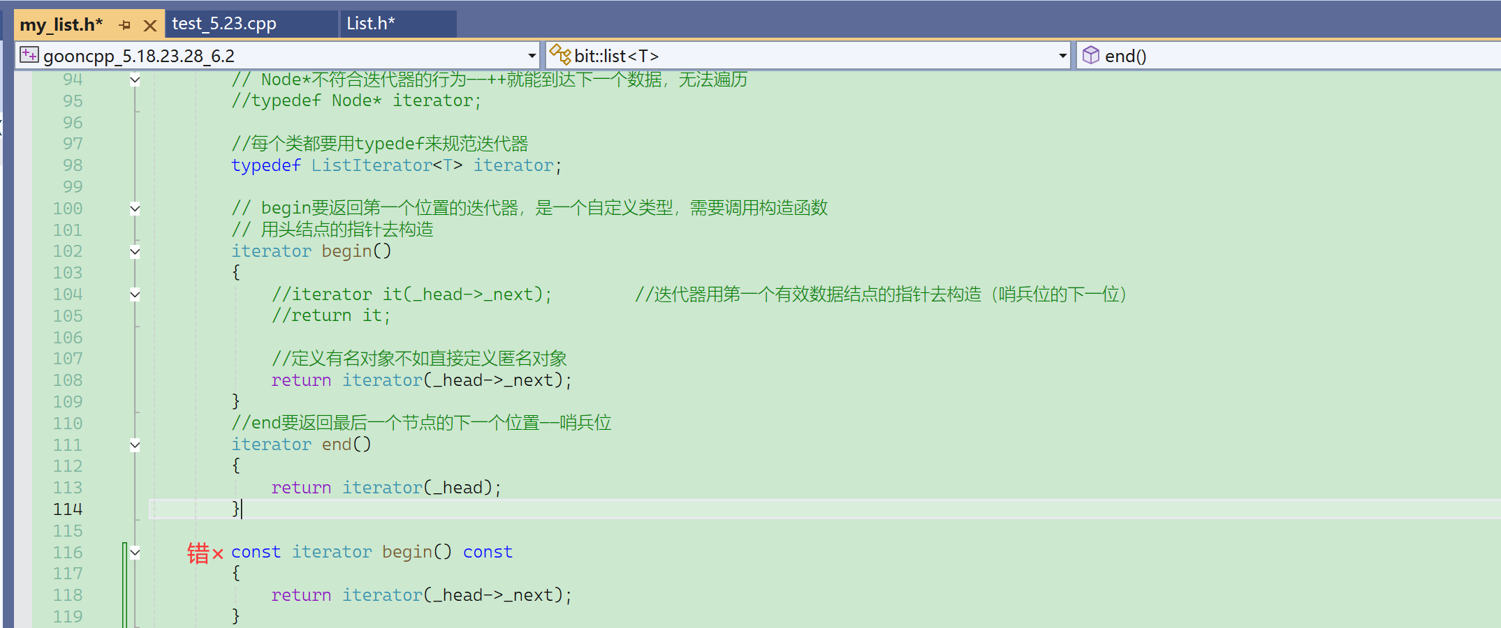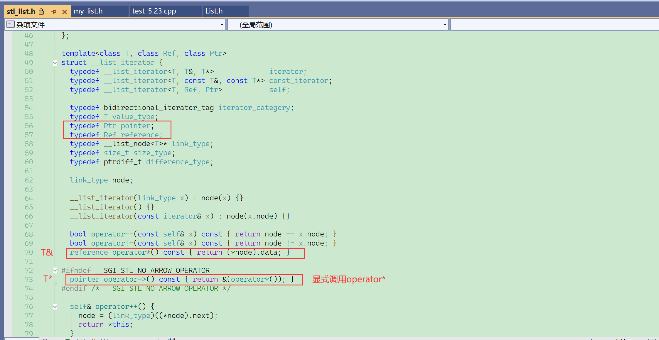 - 而it._next->data这样的代码却不是通用的,虽然能通过,但是用到库里的链表的it._nect->data就不行了,因为it的成员变量叫什么我们并不知道。