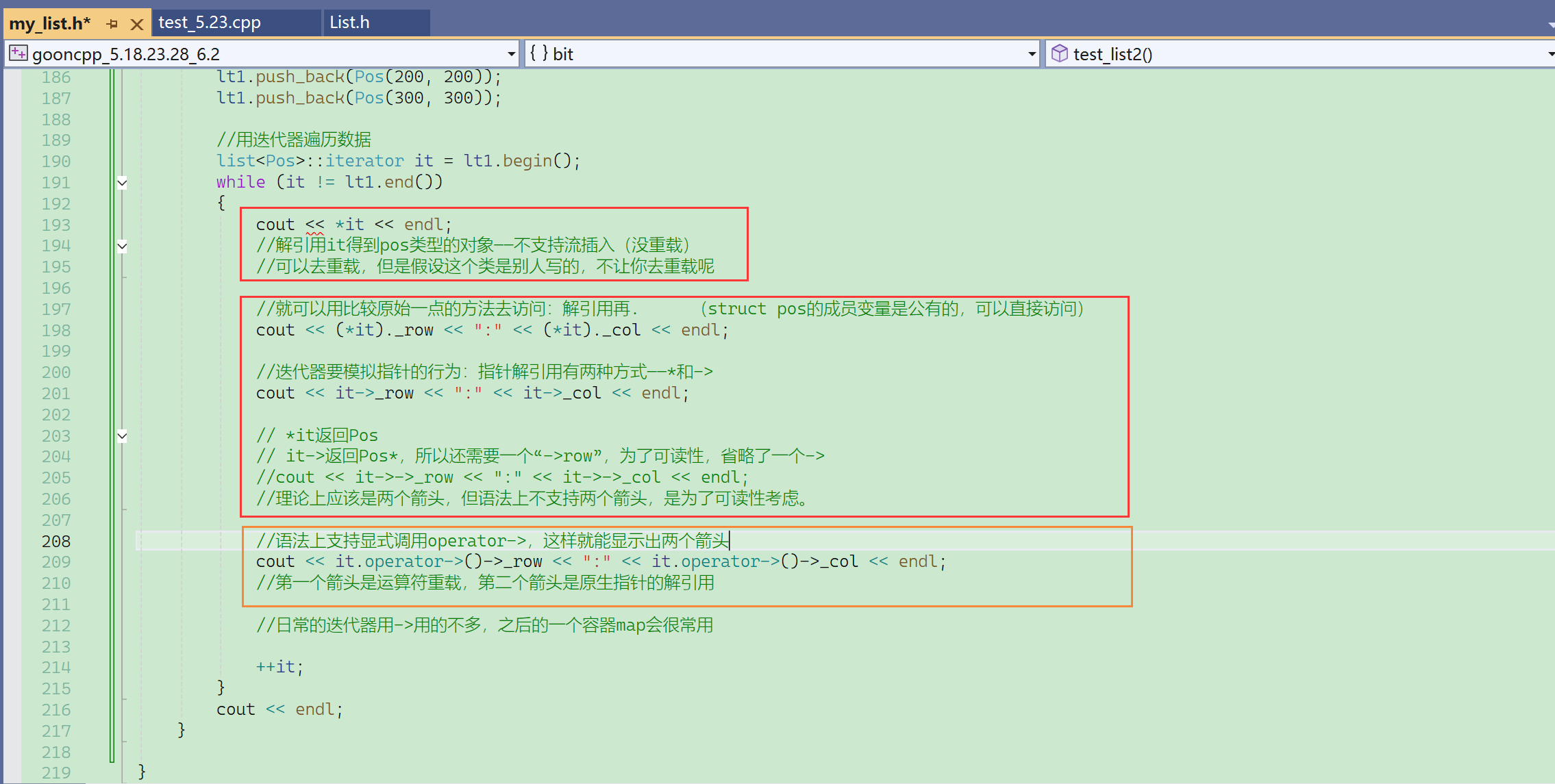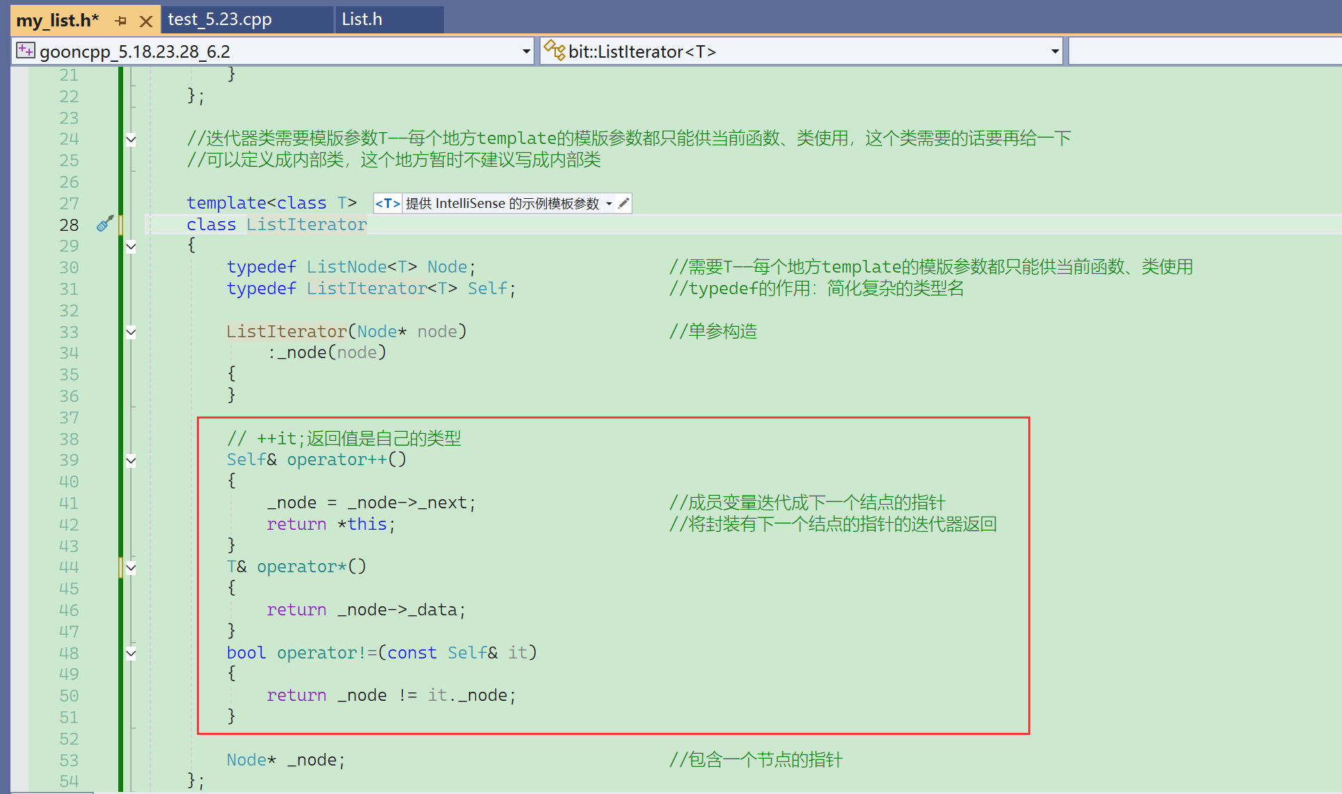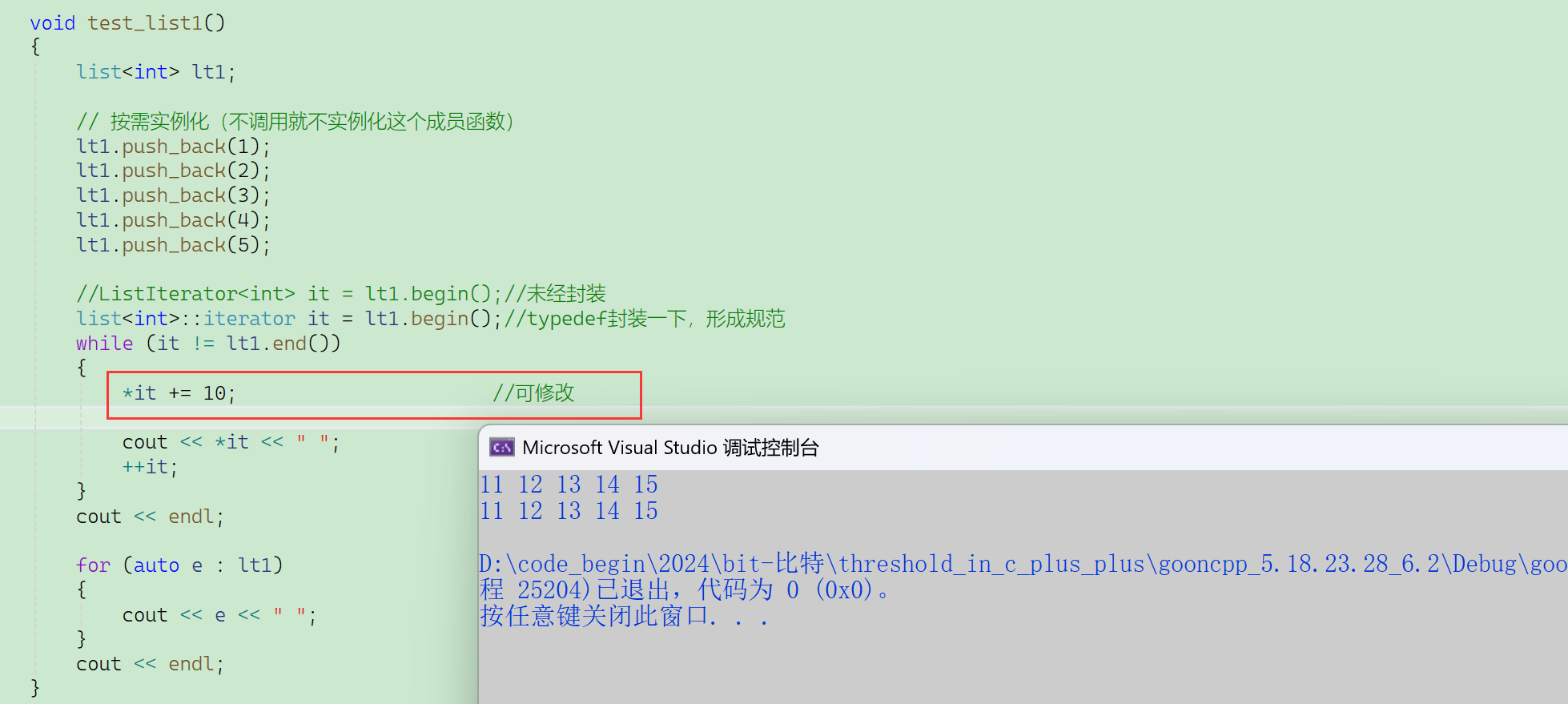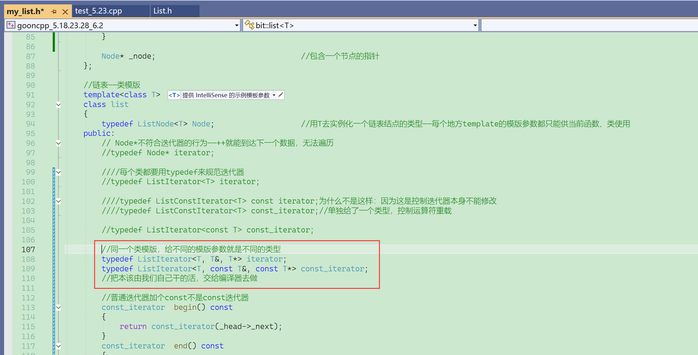 - 而it._next->data这样的代码却不是通用的,虽然能通过,但是用到库里的链表的it._nect->data就不行了,因为it的成员变量叫什么我们并不知道。