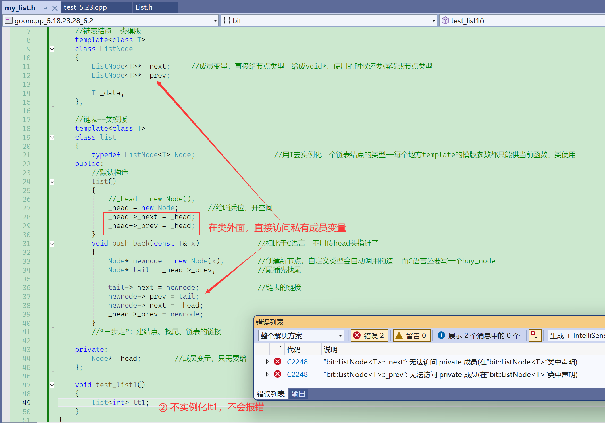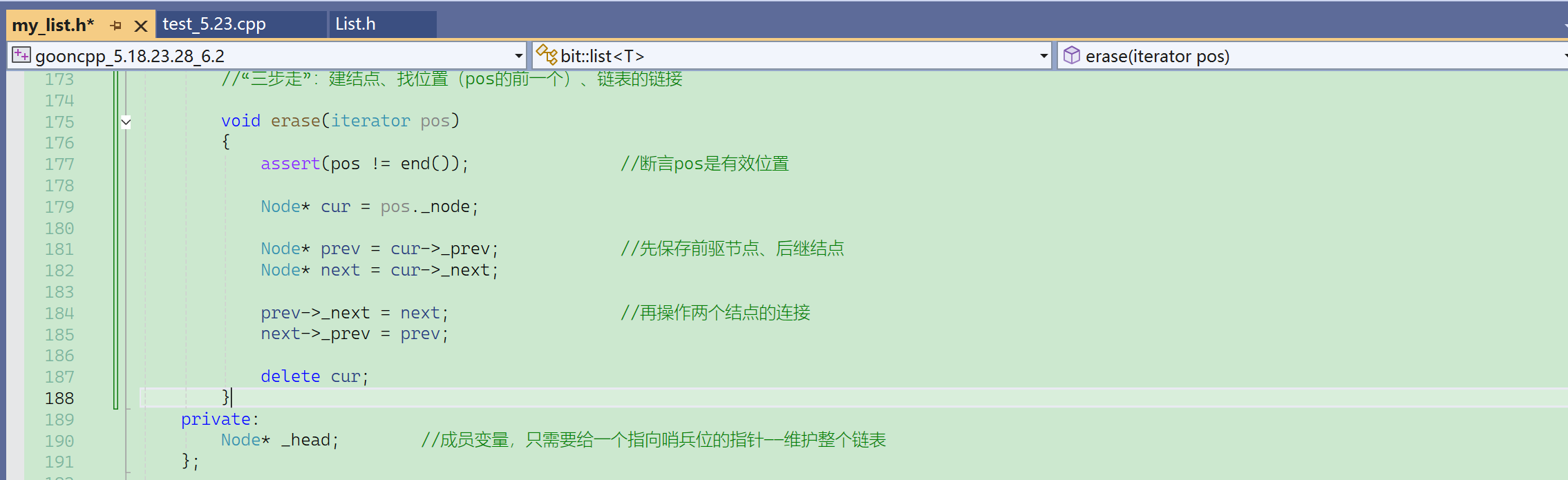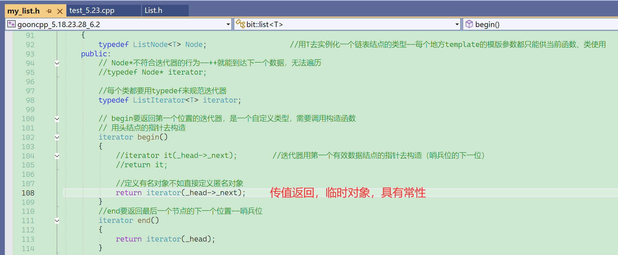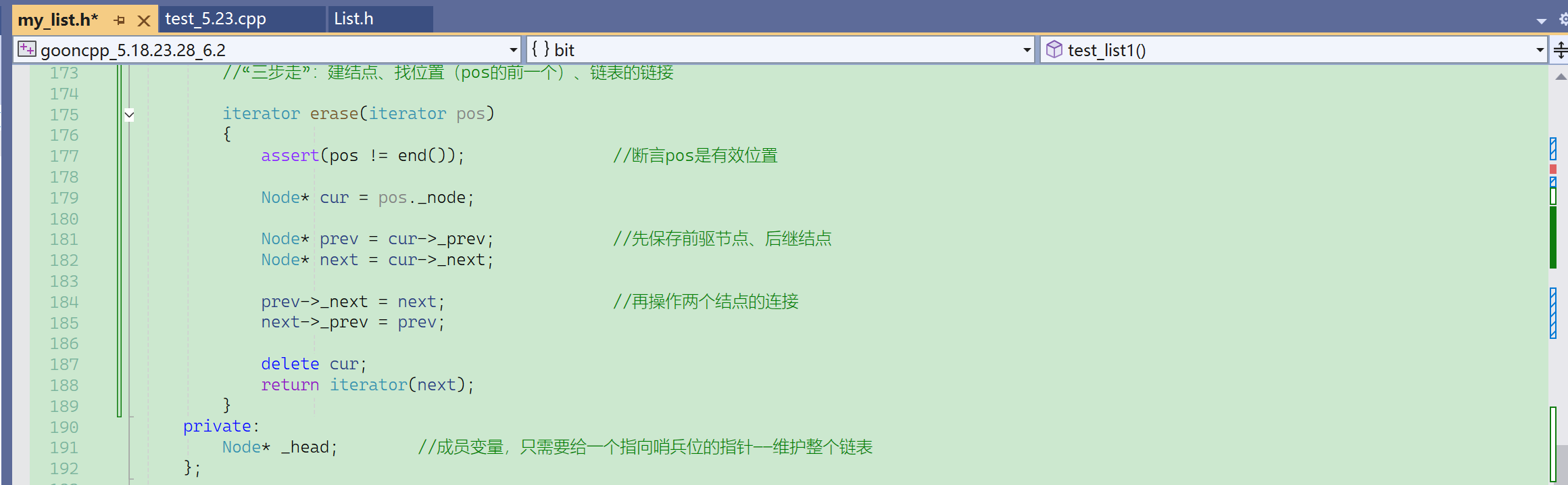 - 而it._next->data这样的代码却不是通用的,虽然能通过,但是用到库里的链表的it._nect->data就不行了,因为it的成员变量叫什么我们并不知道。