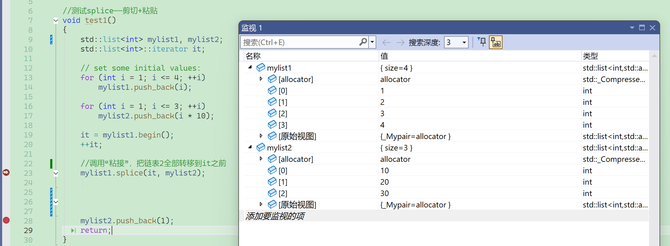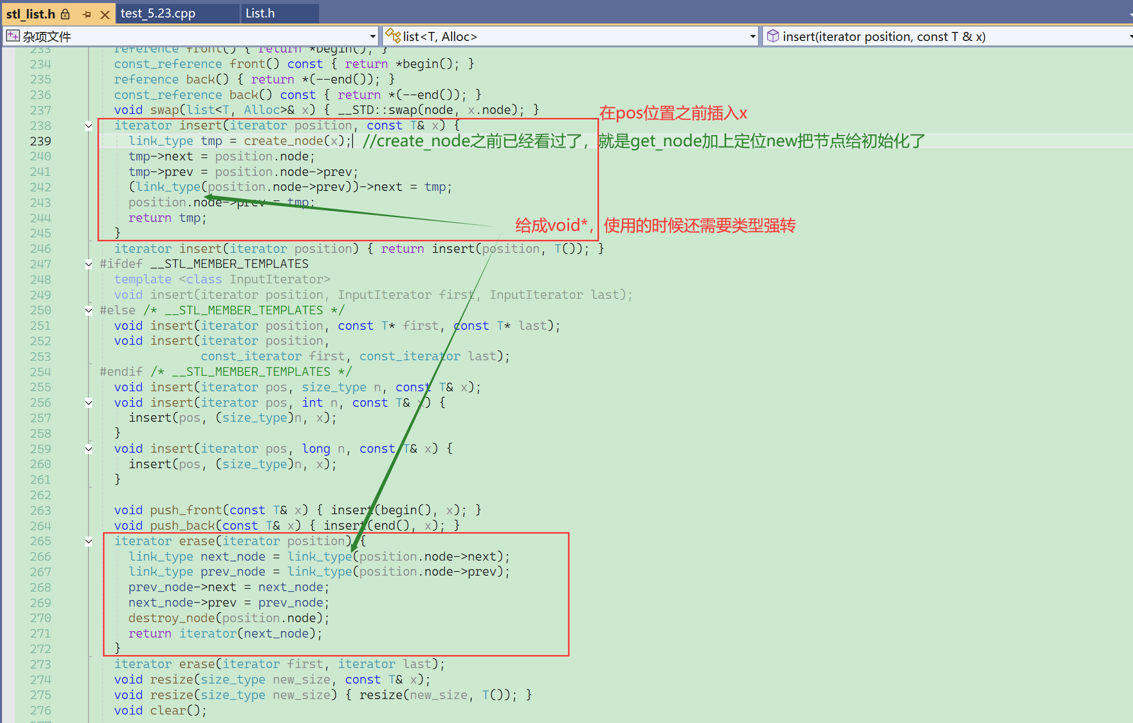 list的insert,在pos位置之前插入,以前C语言的时候传的是结点的指针,现在传的是迭代器。