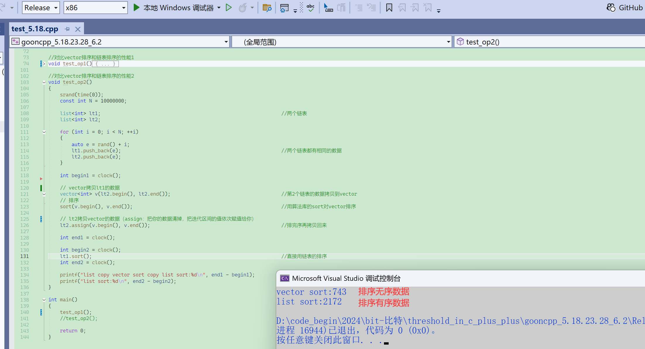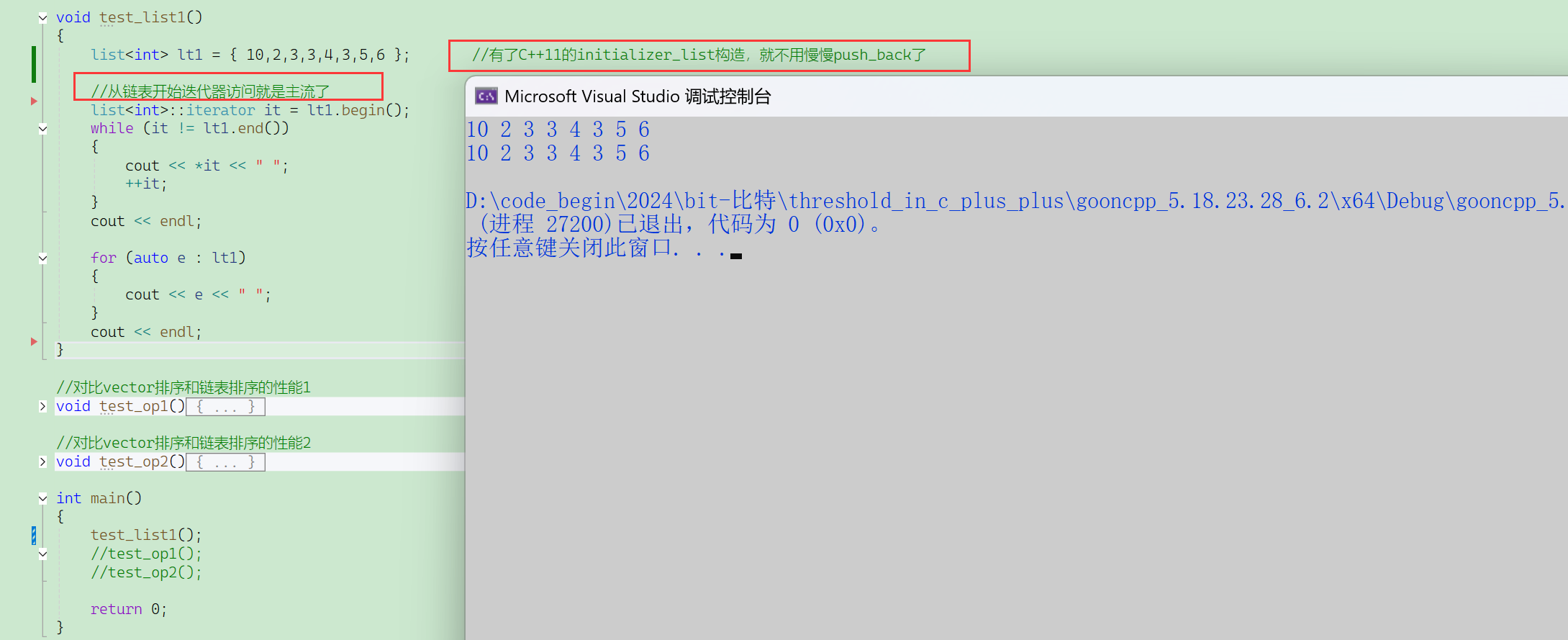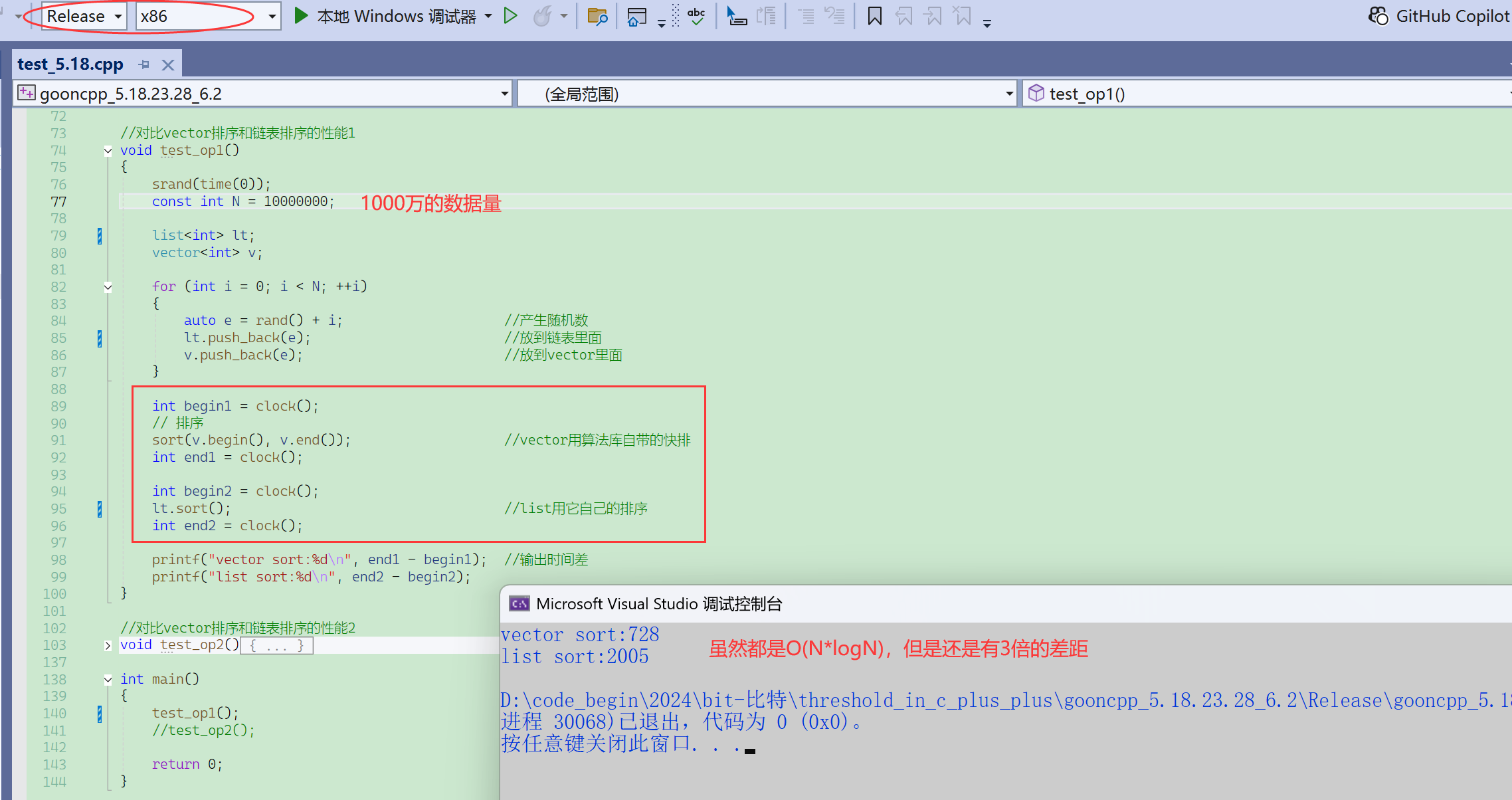 - 就是说链表的排序,先拷贝到vector,让vector排完了,在拷贝回来,都比list自己排快很多。