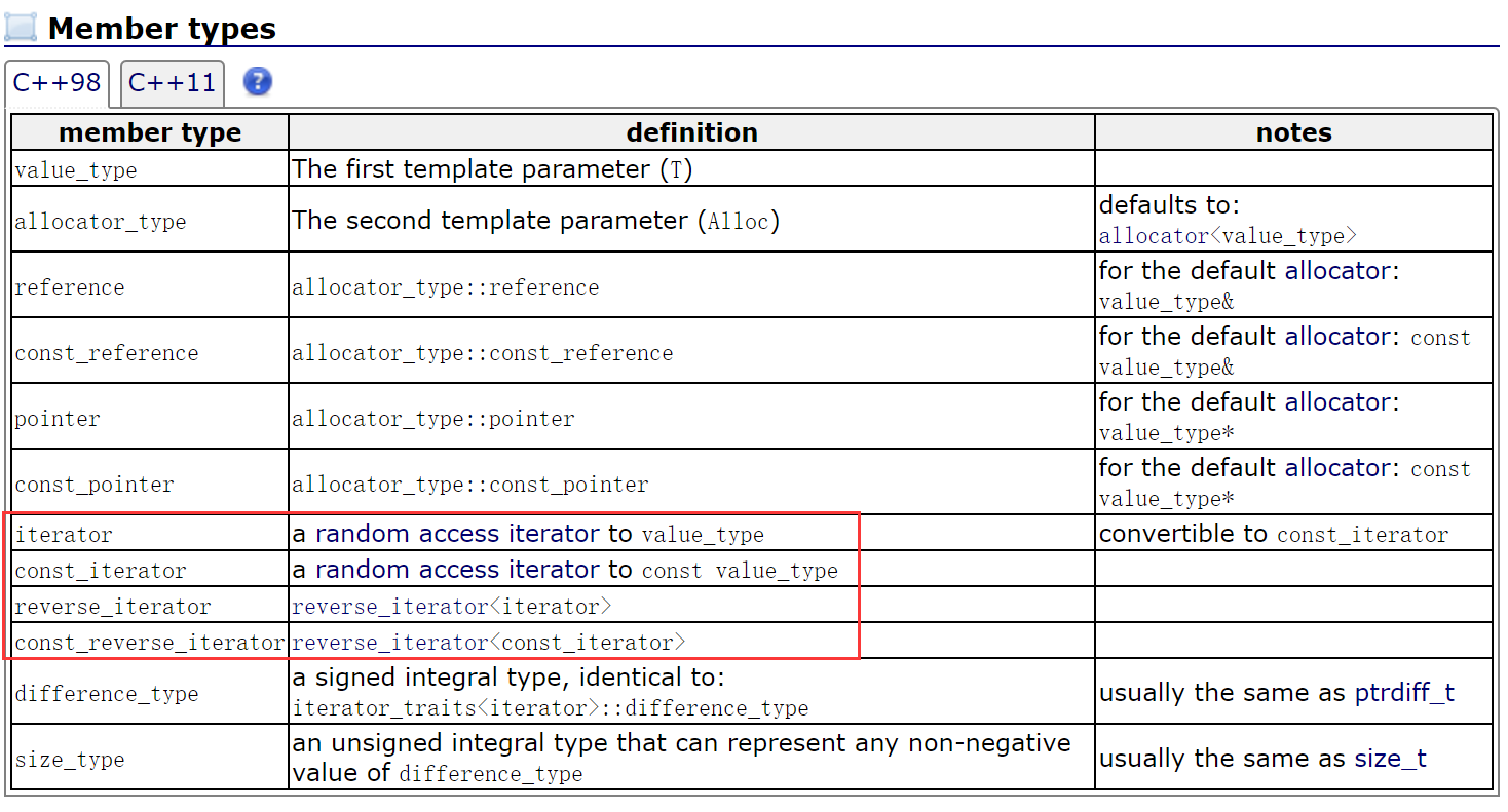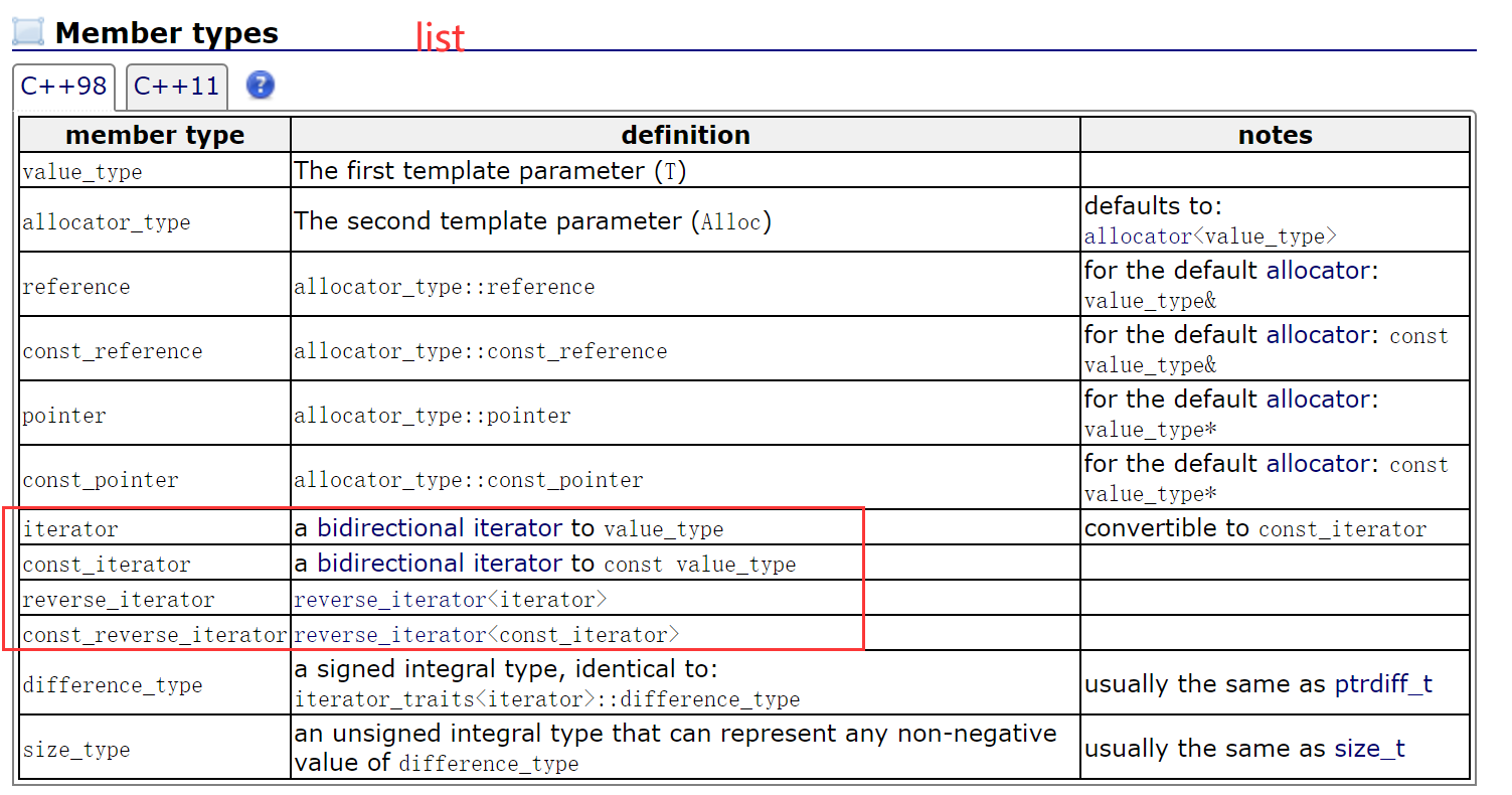 前面学的string和vector的迭代器都是随机迭代器,支持++,--,+,-。