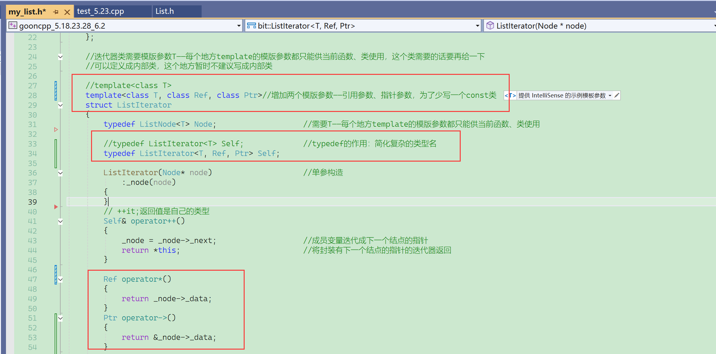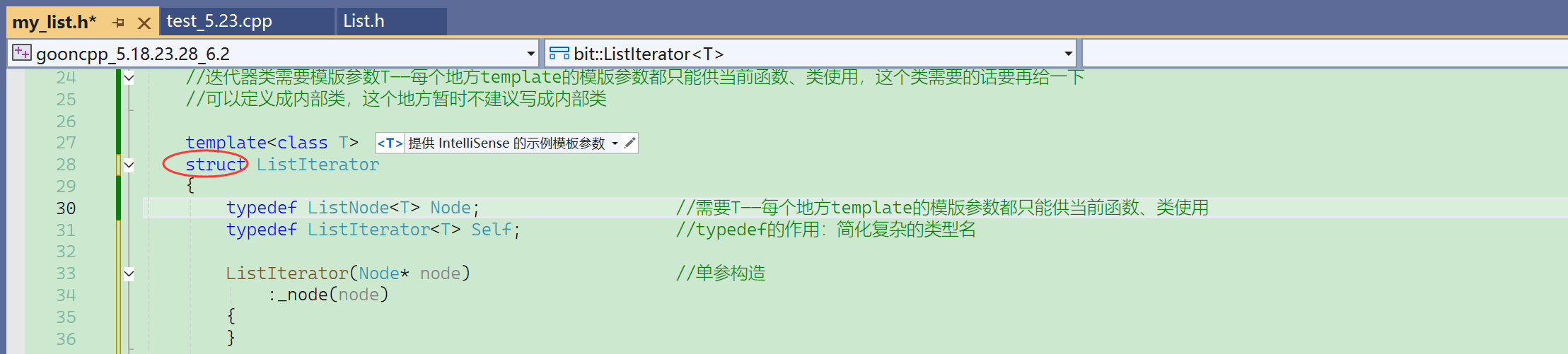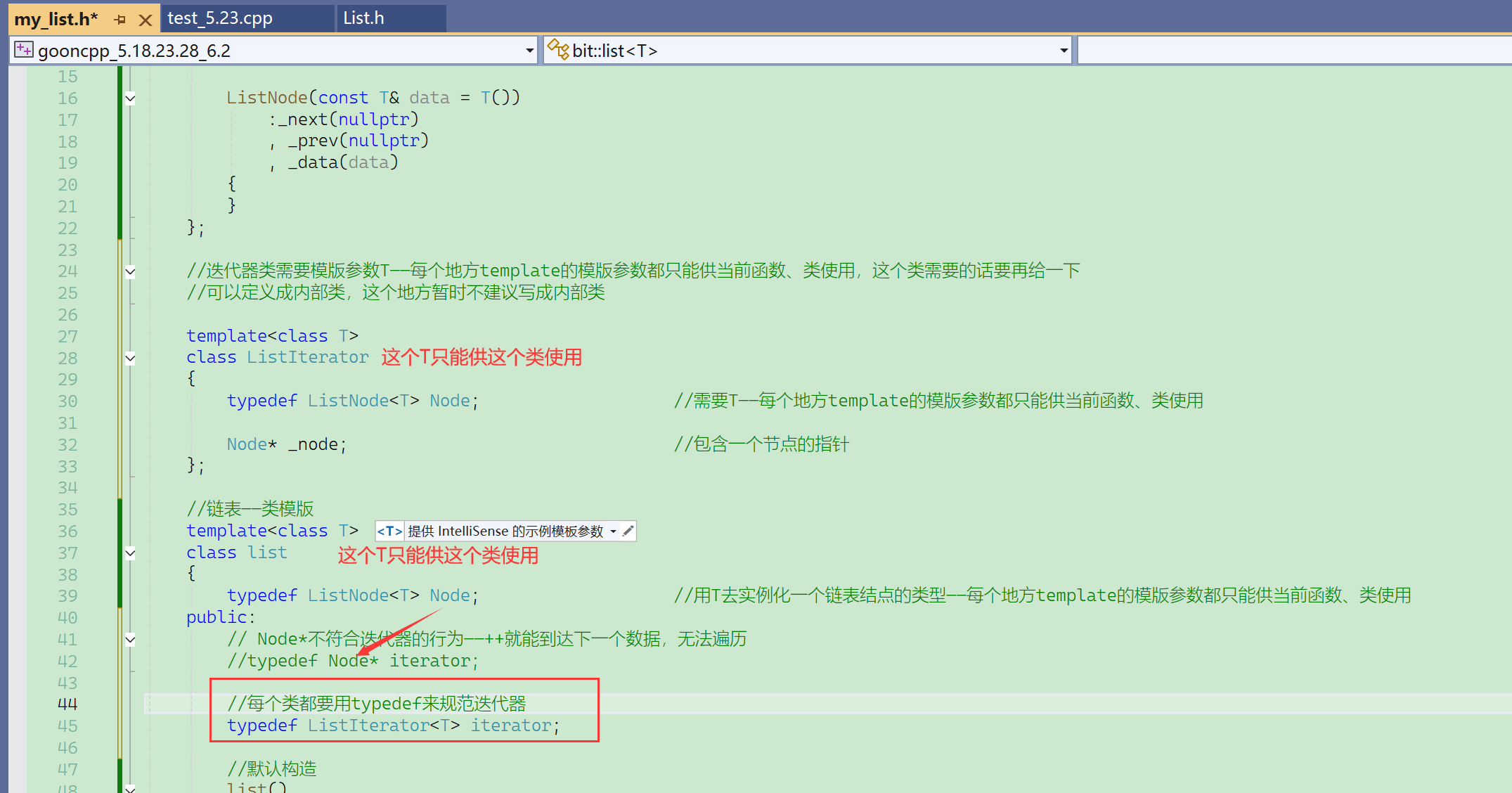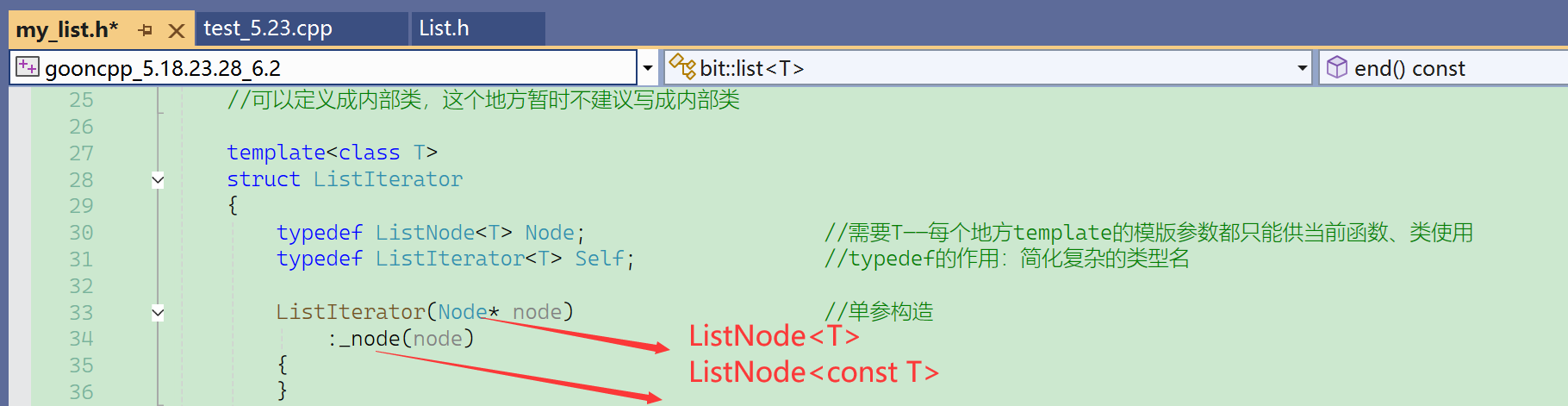 但是虽然不能改T这第一个模版参数,却可以增加ListIterator的模版参数,来达到效果。