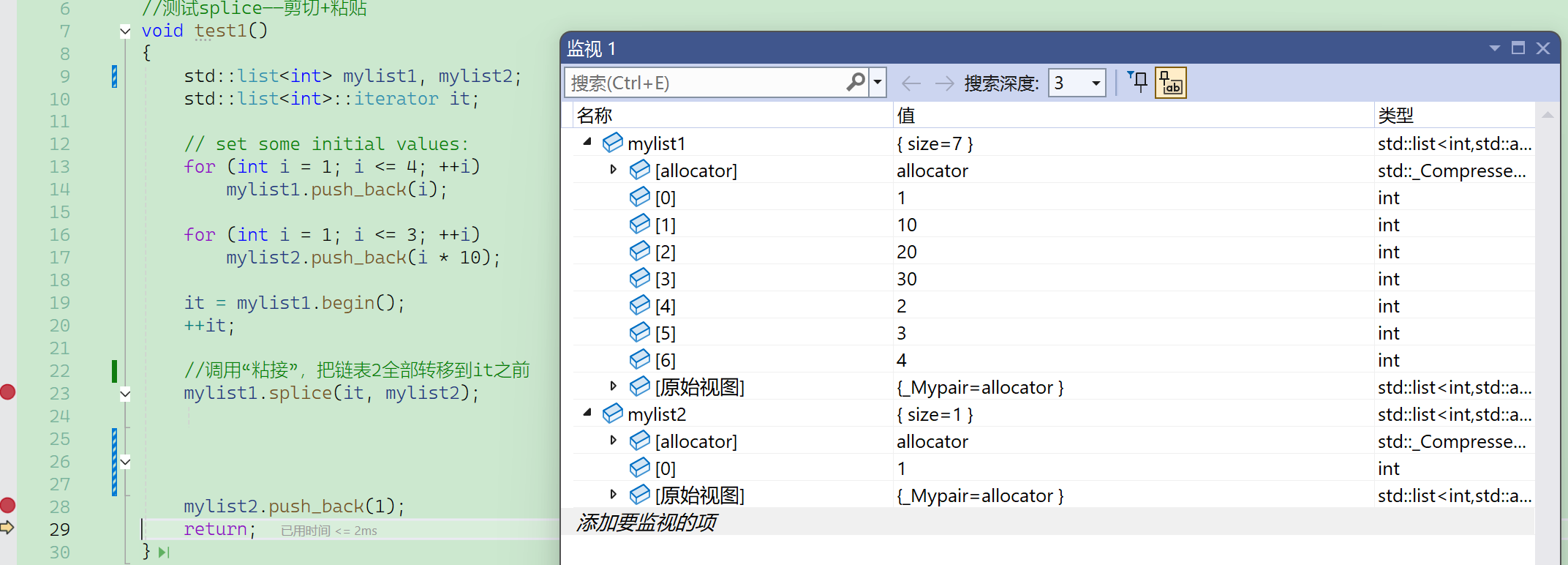 4. 与其他的序列式容器相比(array,vector,deque),list通常在任意位置进行插入、移除元素的执行效率更好。