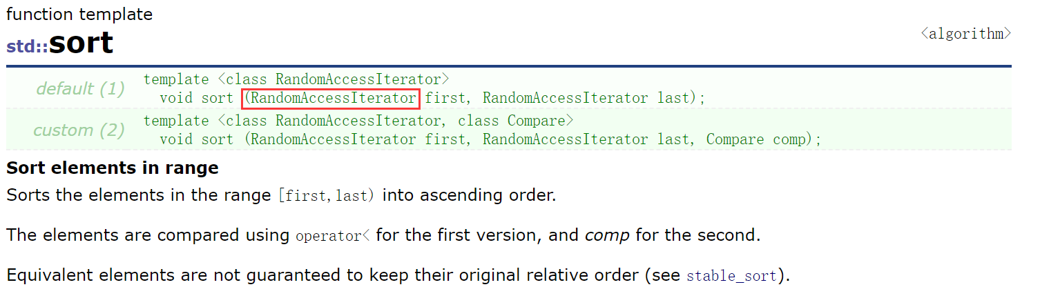 算法库的sort不能排序链表,因为sort的底层是快排,快排需要随机迭代器。