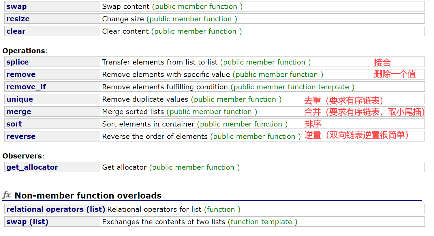 list中还有一些操作,需要用到时大家可参阅list的文档说明。