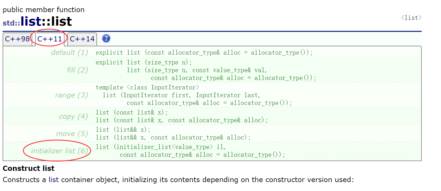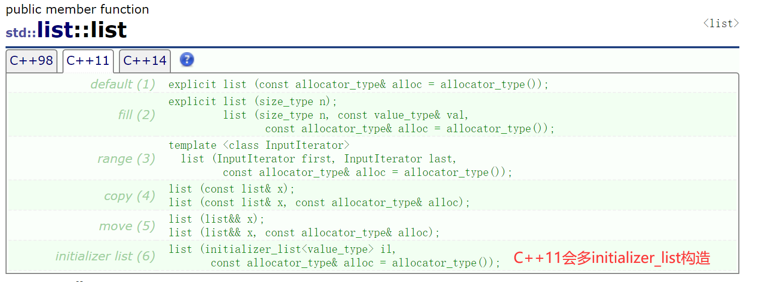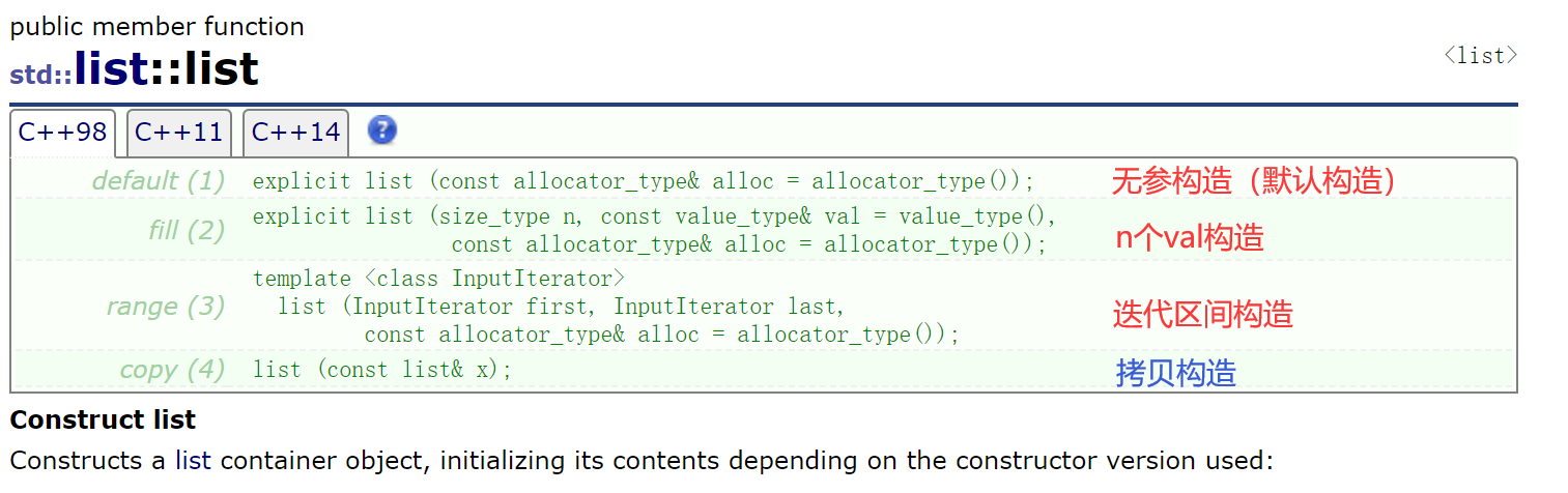 list (InputIterator first, InputIterator last) | 用[first, last)迭代区间中的元素构造list |