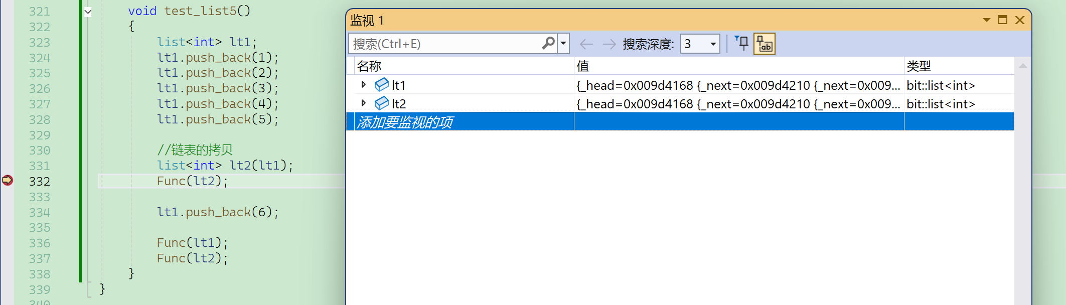 通过调试也能观察到,lt1和lt2的地址,指向的是同一块内存空间。