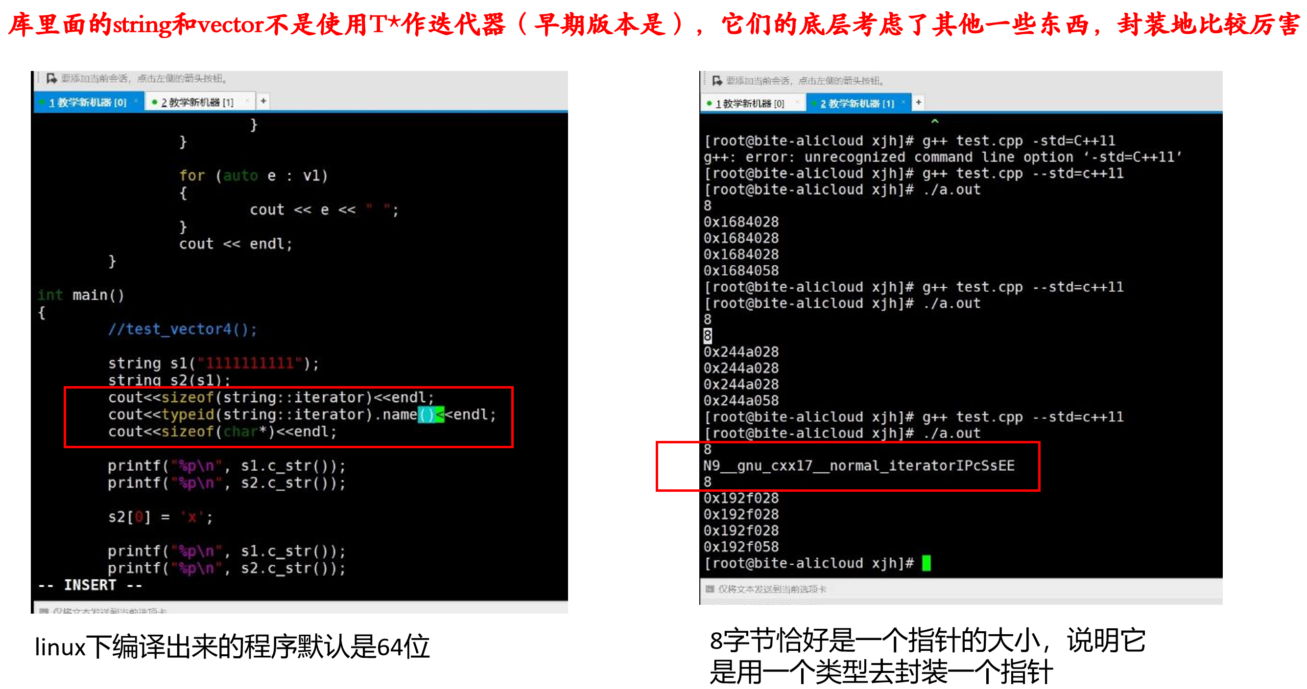 库里面的string和vector不是使用T*作迭代器(早期版本是,比如SGI的STL3.0),它们的底层考虑了其他一些东西,封装地比较厉害。本质还是一个T*,不过类似于链表这里的处理,进行了一个封装。
