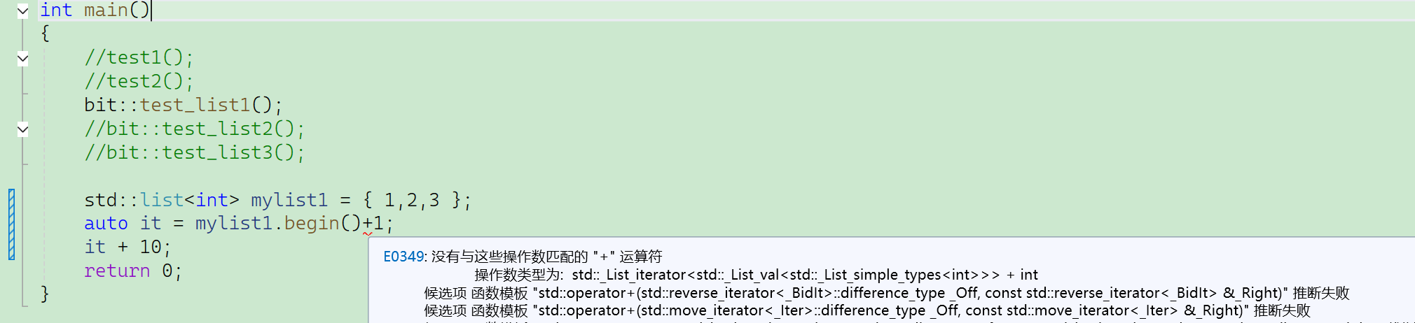 【注意】双向迭代器(支持++、--,不支持+、-)