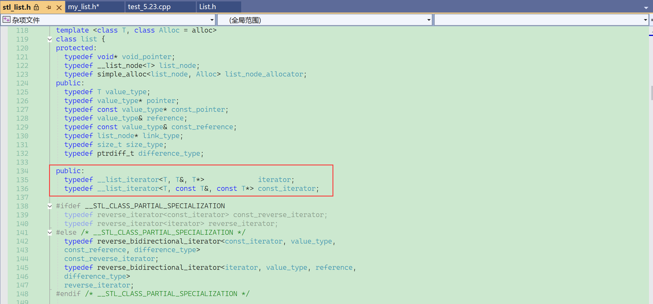 - 在list里面只有一个封装好的iterator, 这个封装好的iterator的操作*it/++it/it!=...... 在每个平台都是通用的。