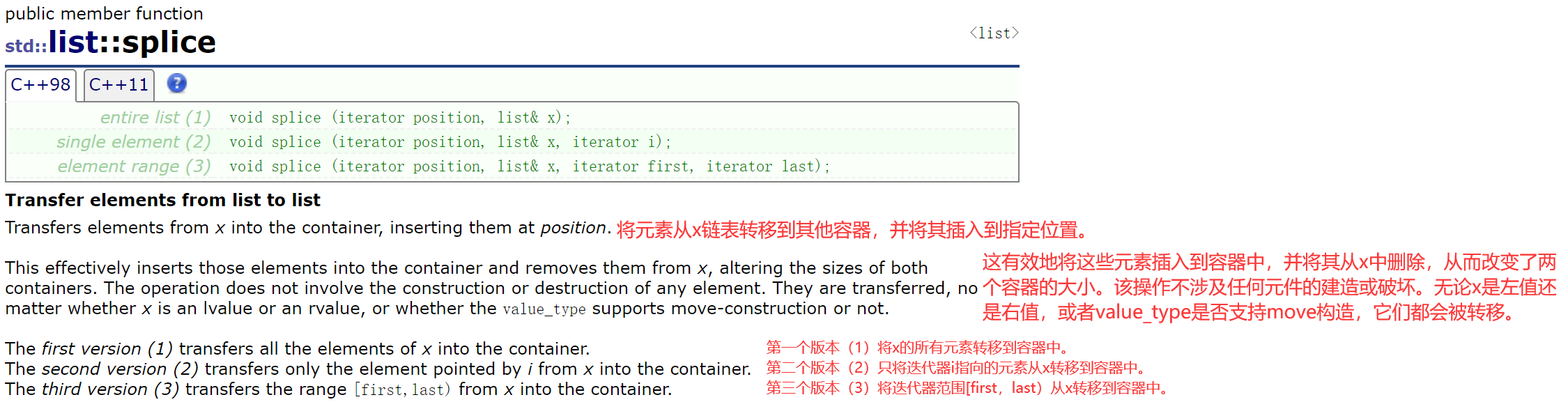 ③ 将x链表的[first,last]位置的所有结点转移到新容器。