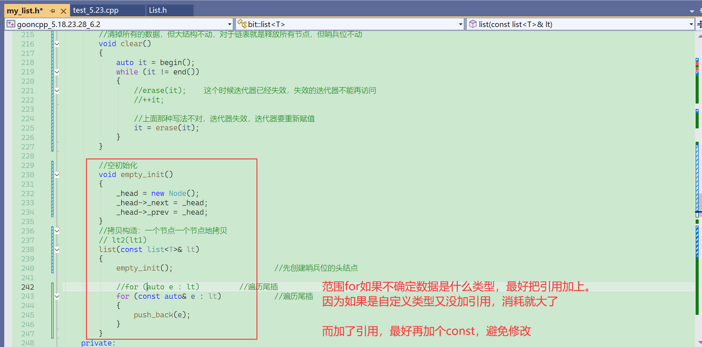 传统的写法是一个结点一个结点地拷贝。insert的前提是有一个哨兵位结点。