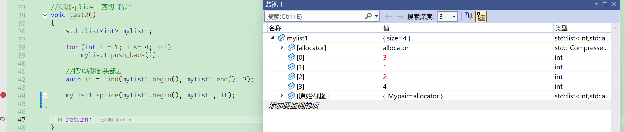 需要注意的是,list2虽然空了,但是这个对象还在,它的生命周期还没结束,只是它管理的结点全部被移走了。
