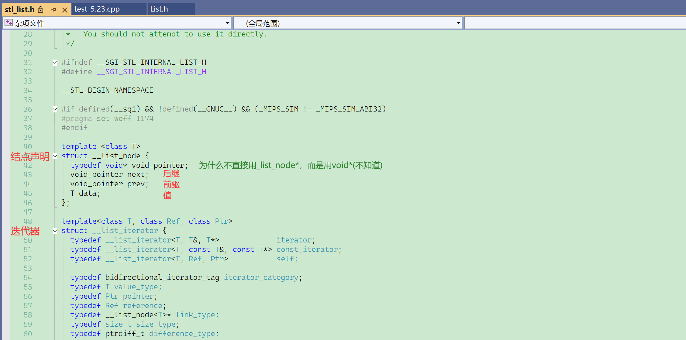 给成void*,用的时候还要强转,自己实现的时候直接给成list_node*就可以了。