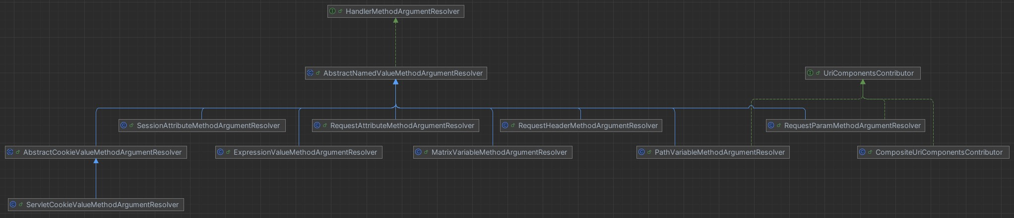 public class RequestParamMethodArgumentResolver extends AbstractNamedValueMethodArgumentResolverimplements UriComponentsContributor {public class RequestHeaderMethodArgumentResolver extends AbstractNamedValueMethodArgumentResolver {private RequestHeaderNamedValueInfo(RequestHeader annotation) {super(annotation.name(), annotation.required(), annotation.defaultValue());}}