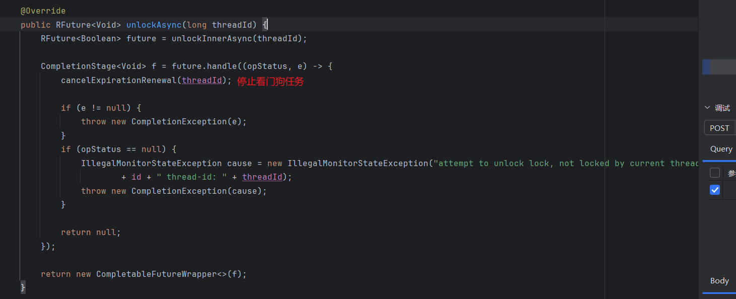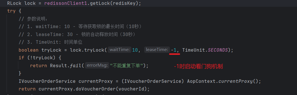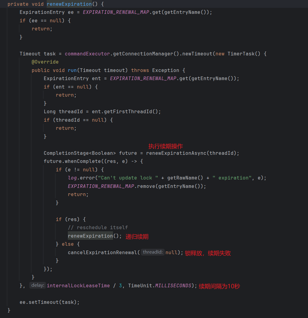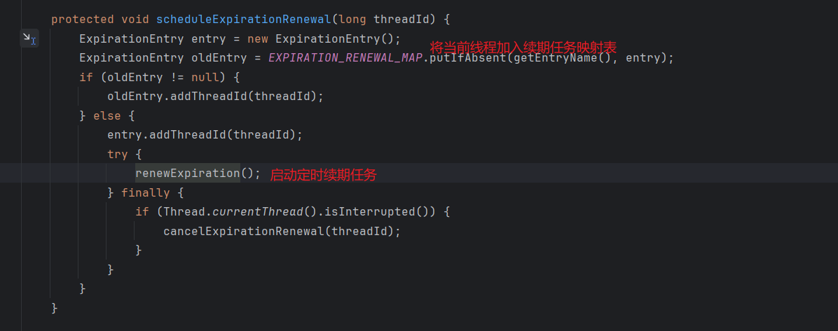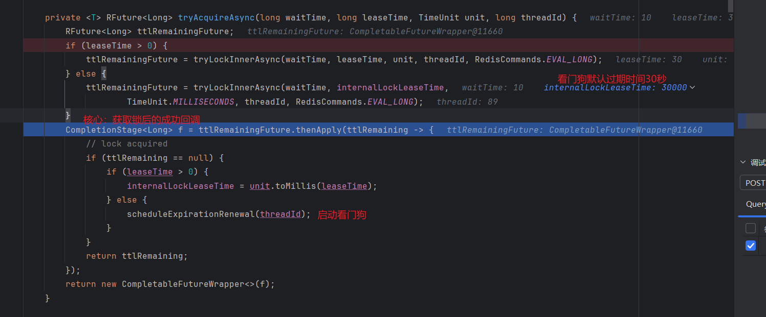 看门狗解决业务的处理时间超过了锁过期的时间痛点,解决方案是自动续期。