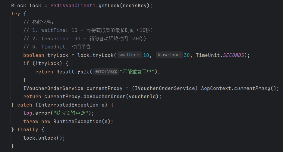 @Overridepublic Result queryShopById(Long id) {if (Objects.isNull(id)) {return Result.fail("商品id为空!");}// 防止缓存击穿方案2:布隆过滤器if (!shopBloomFilter.contains(id)) {log.warn("布隆过滤器拦截,商品ID:{}不存在", id);return Result.fail("商品不存在");}return queryWithMutex(id);