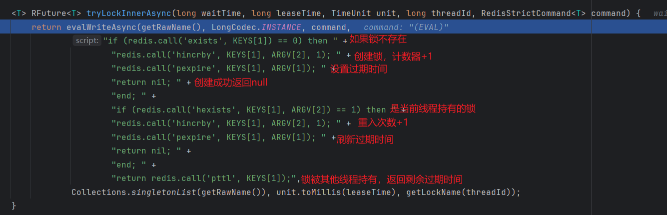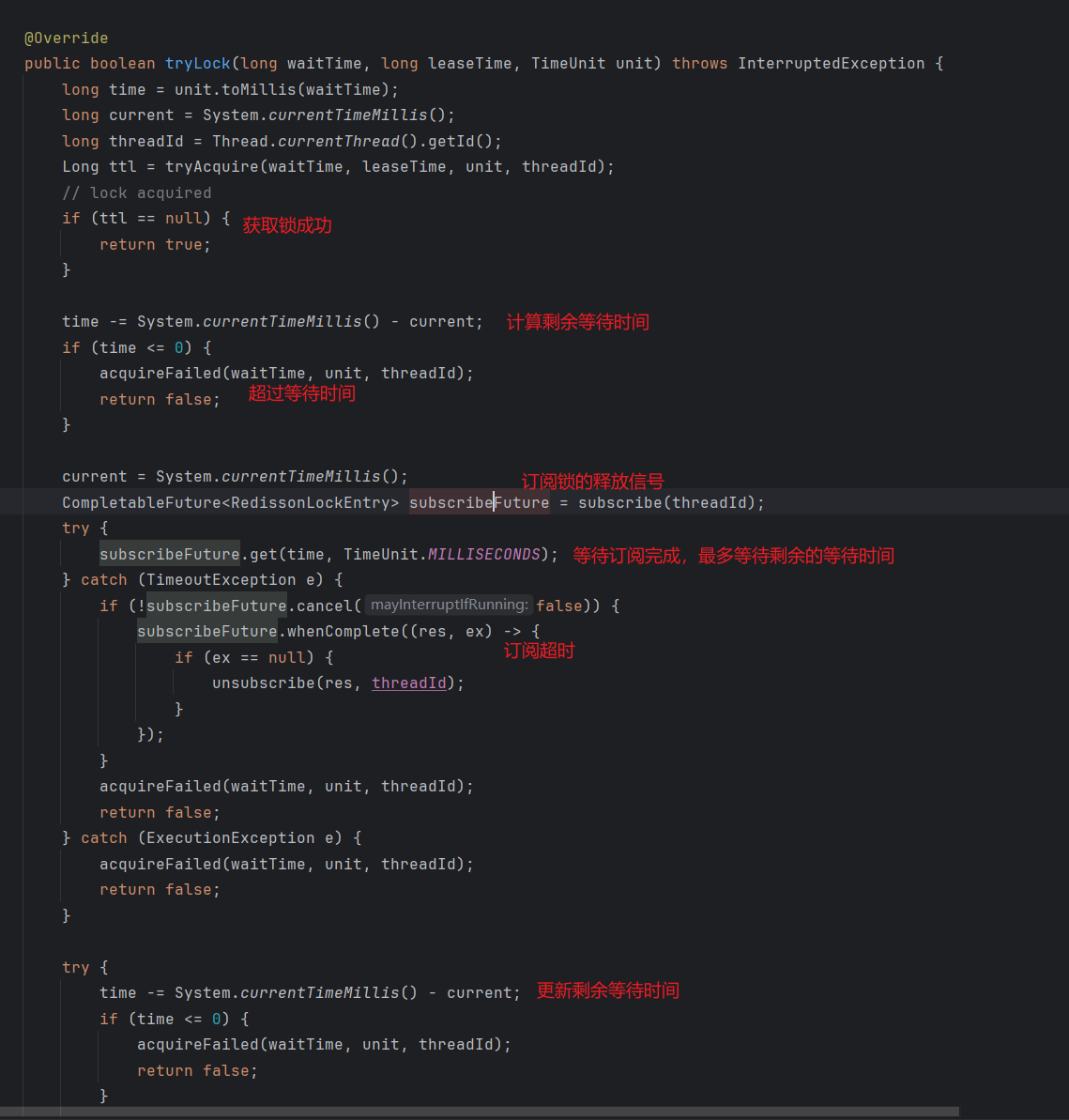 public class RedissonConfig {@Beanpublic RedissonClient redissonClient1() {Config config = new Config();config.useSingleServer().setAddress("redis://111.1.184:6379").setPassword("111").setDatabase(0).setConnectionPoolSize(64).setConnectionMinimumIdleSize(10);config.setLockWatchdogTimeout(30_000L);return Redisson.create(config);}}