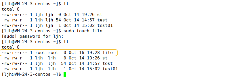 我们在使用普通用户时,若想用 root 权限创建文件等操作,又不想切换账号,就可以借助 sudo