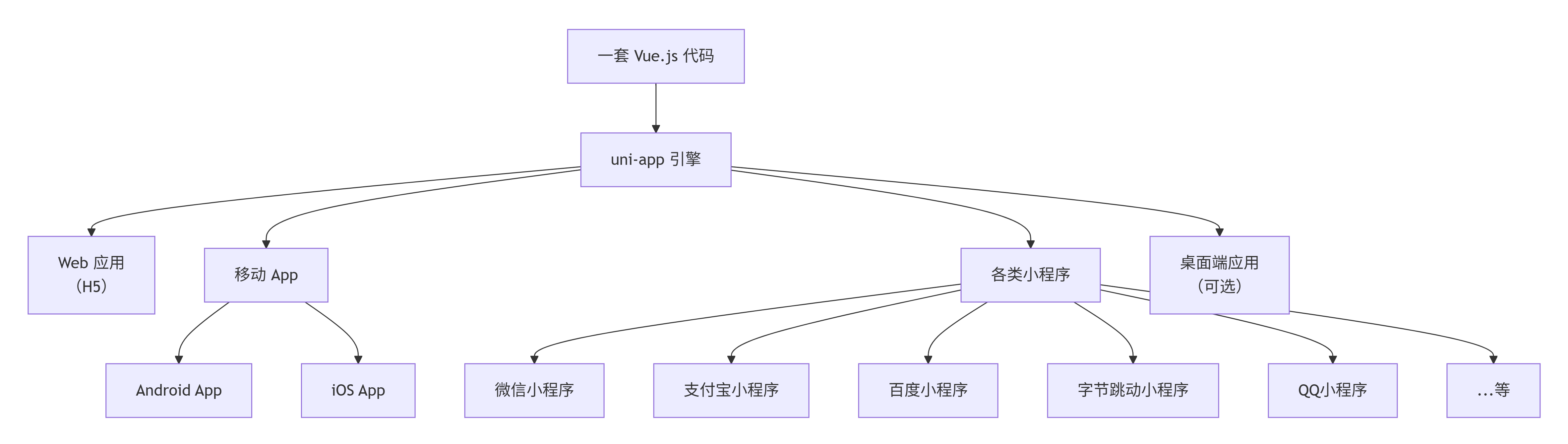 下图直观地展示了 uni-app 强大的多端发布能力:
