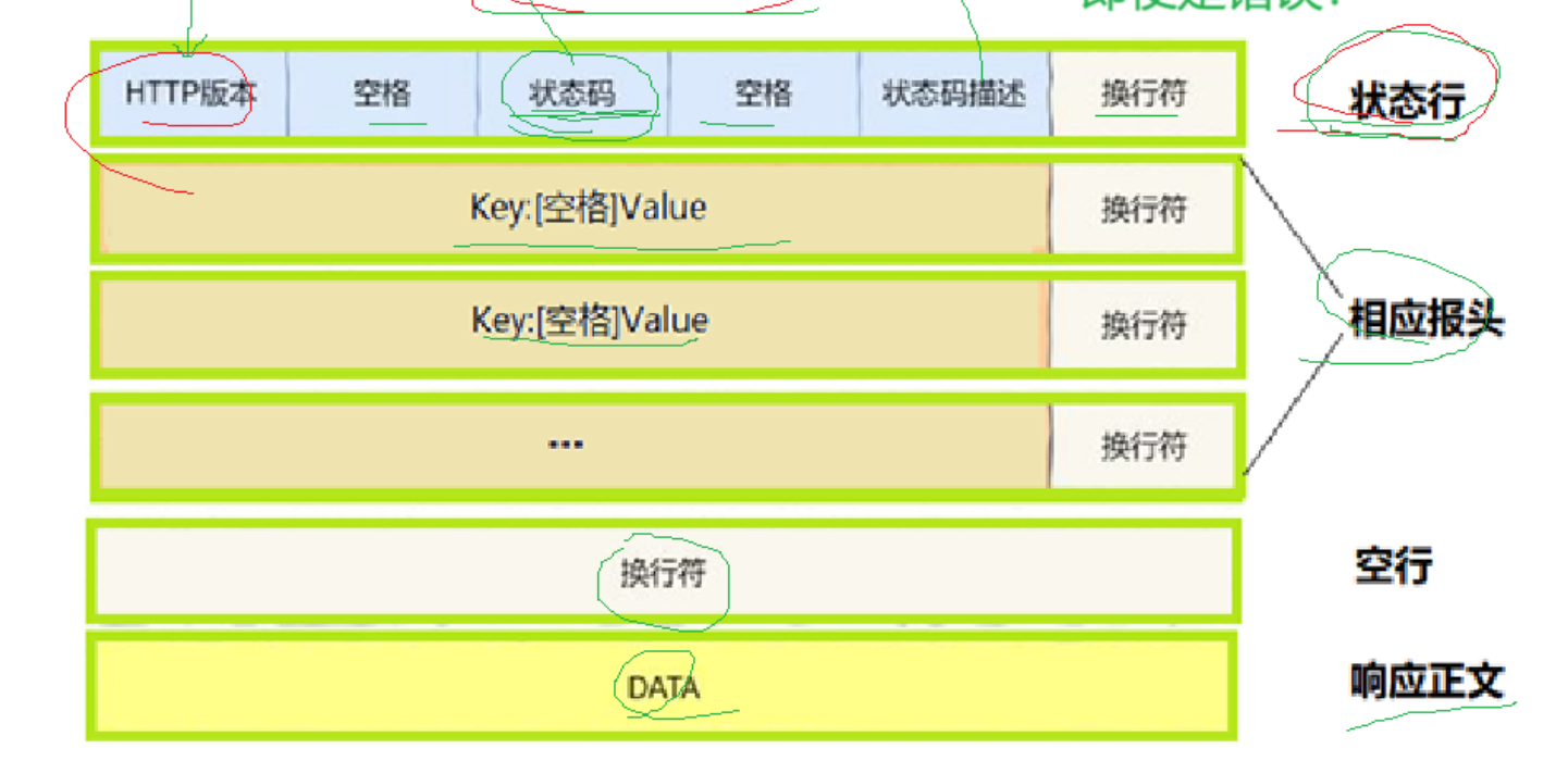 响应格式包含 http版本,状态码,状态码描述,响应报头,响应正文。
