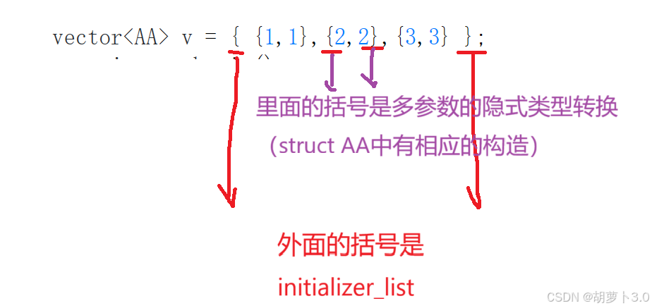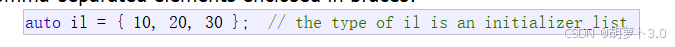 在C++11中,用了 { } ,编译器就会自动认为是initializer_list,我们可以使用 { } 括任意数量的值去初始化vector对象
