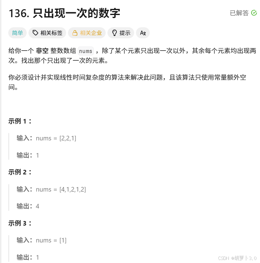 3.1 只出现一次的数字